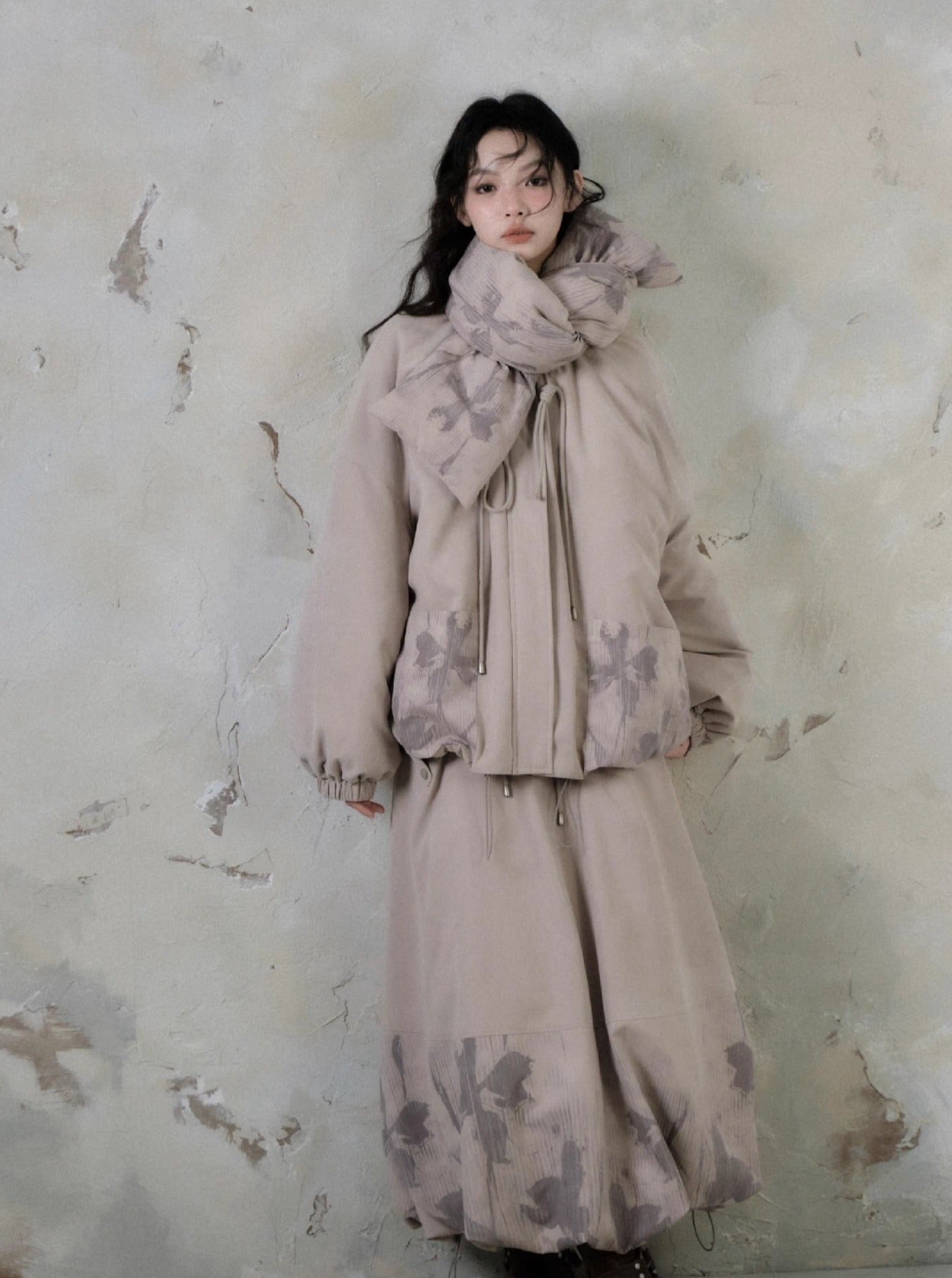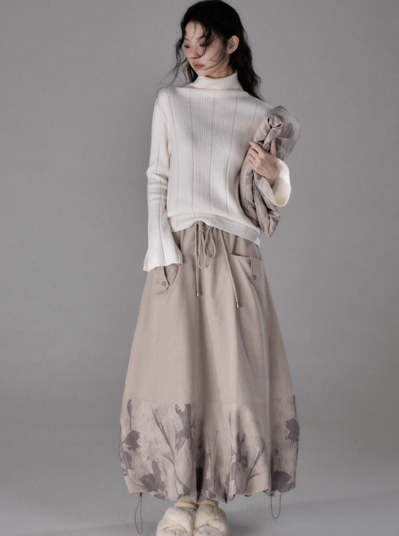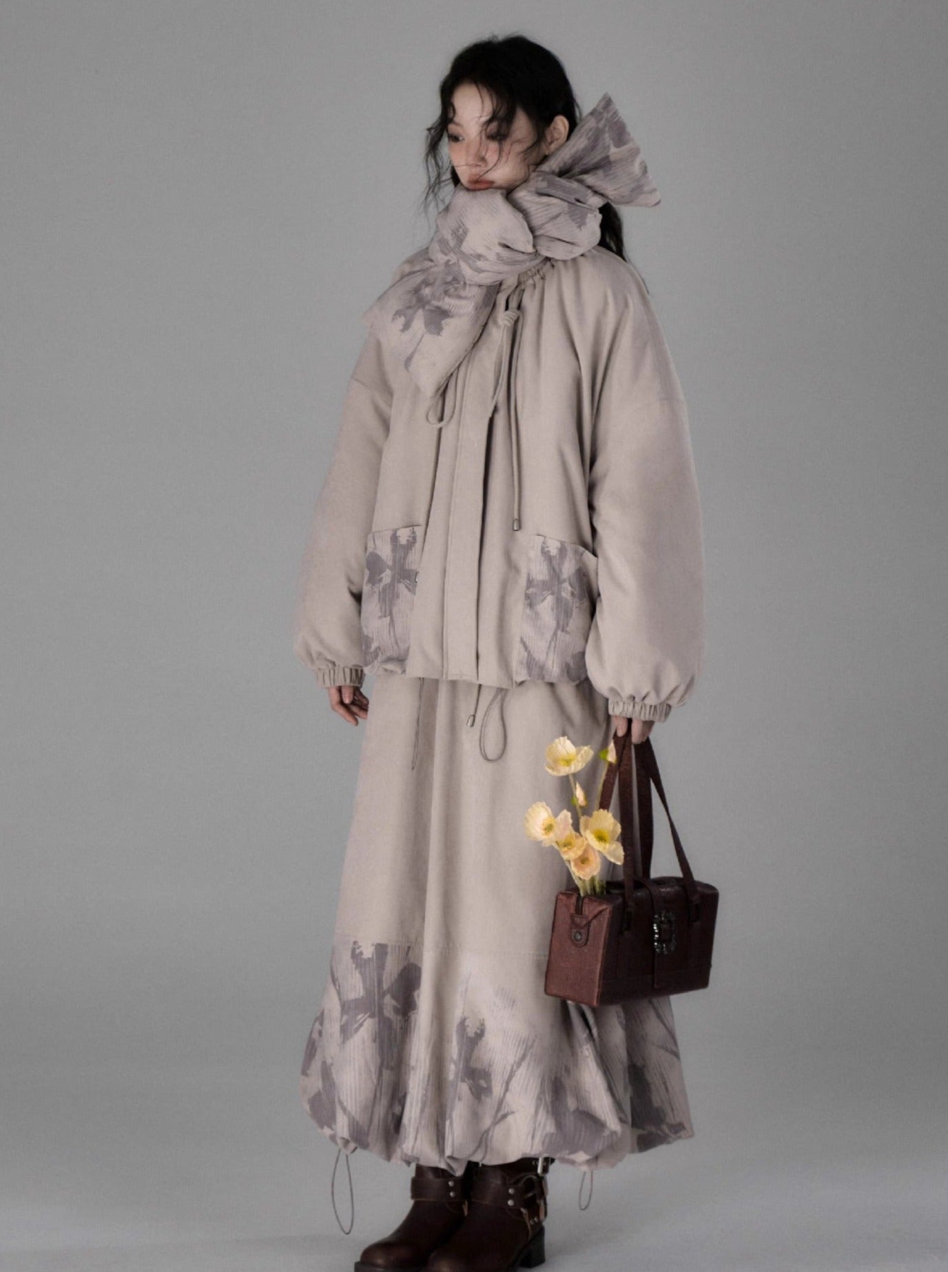 Shadow Printed Cotton Flower Bud Skirt