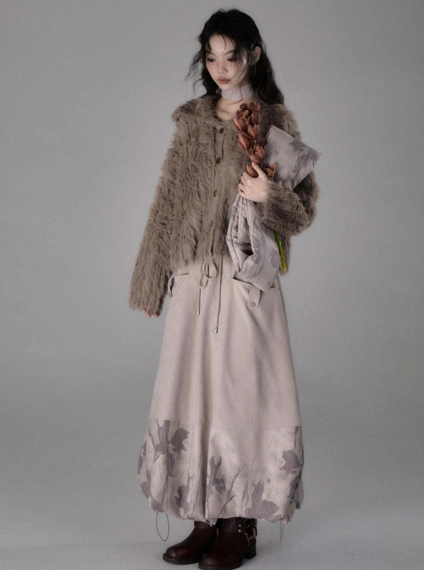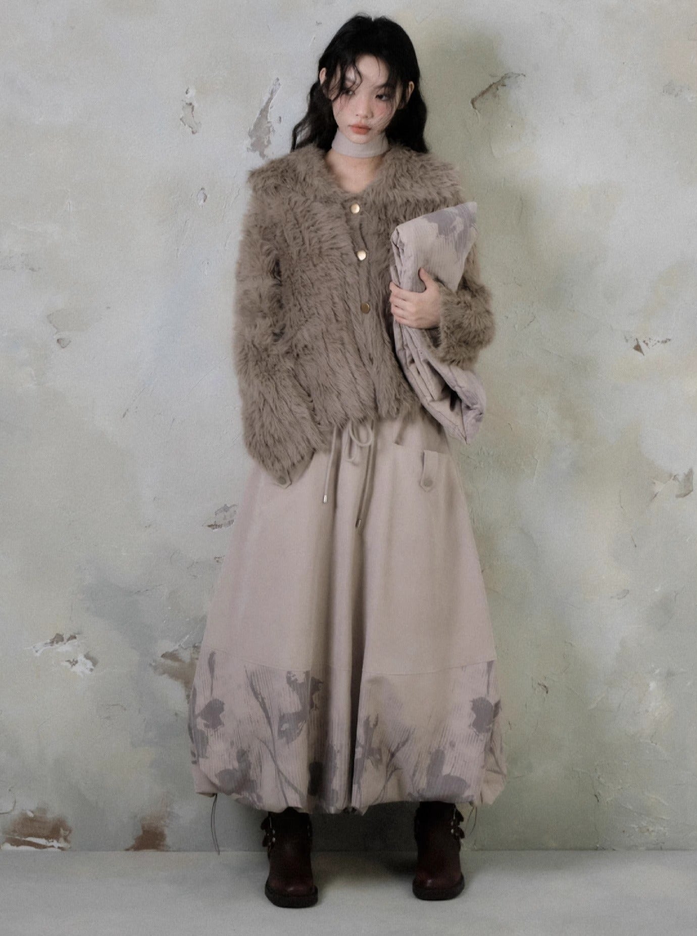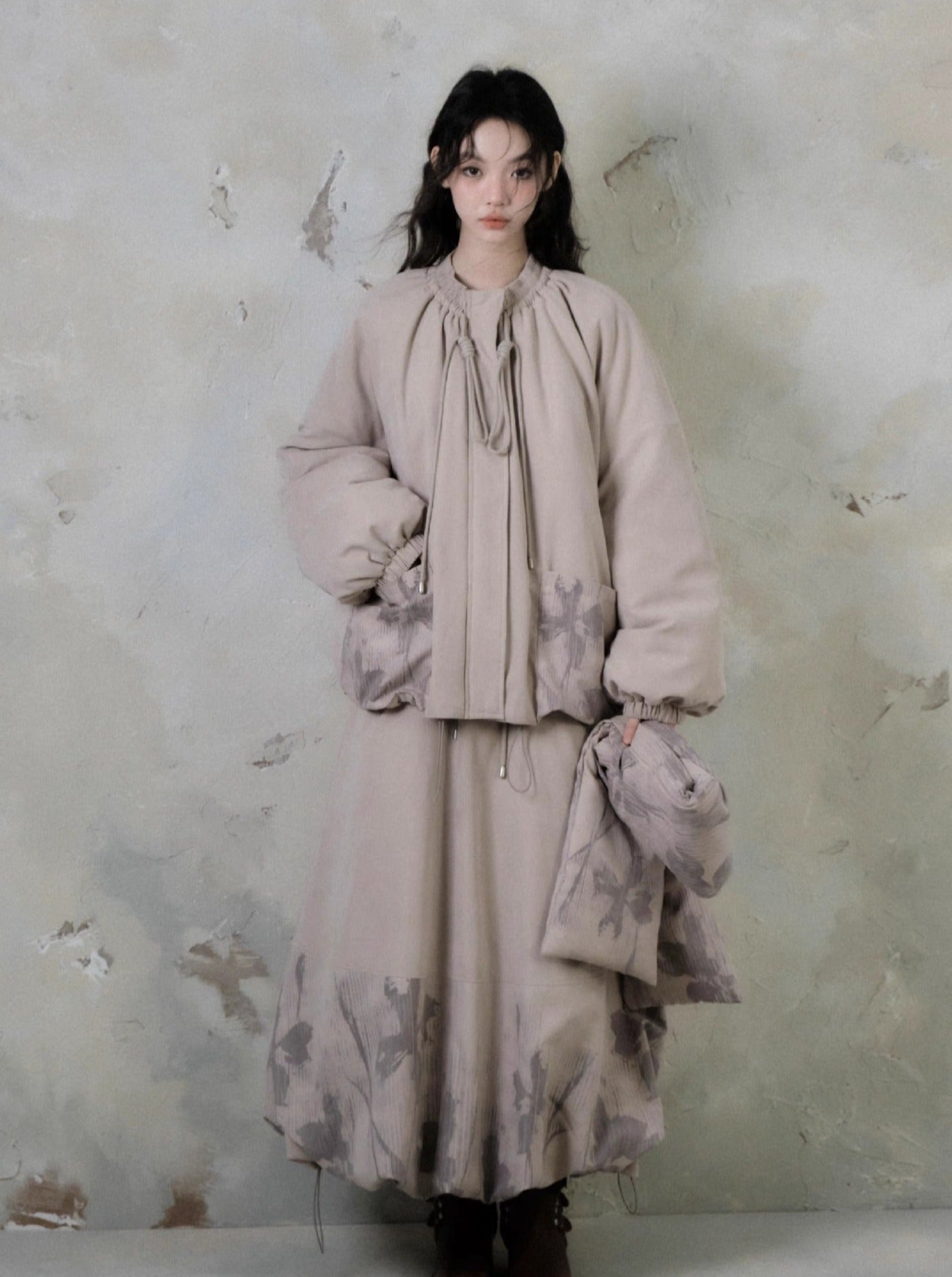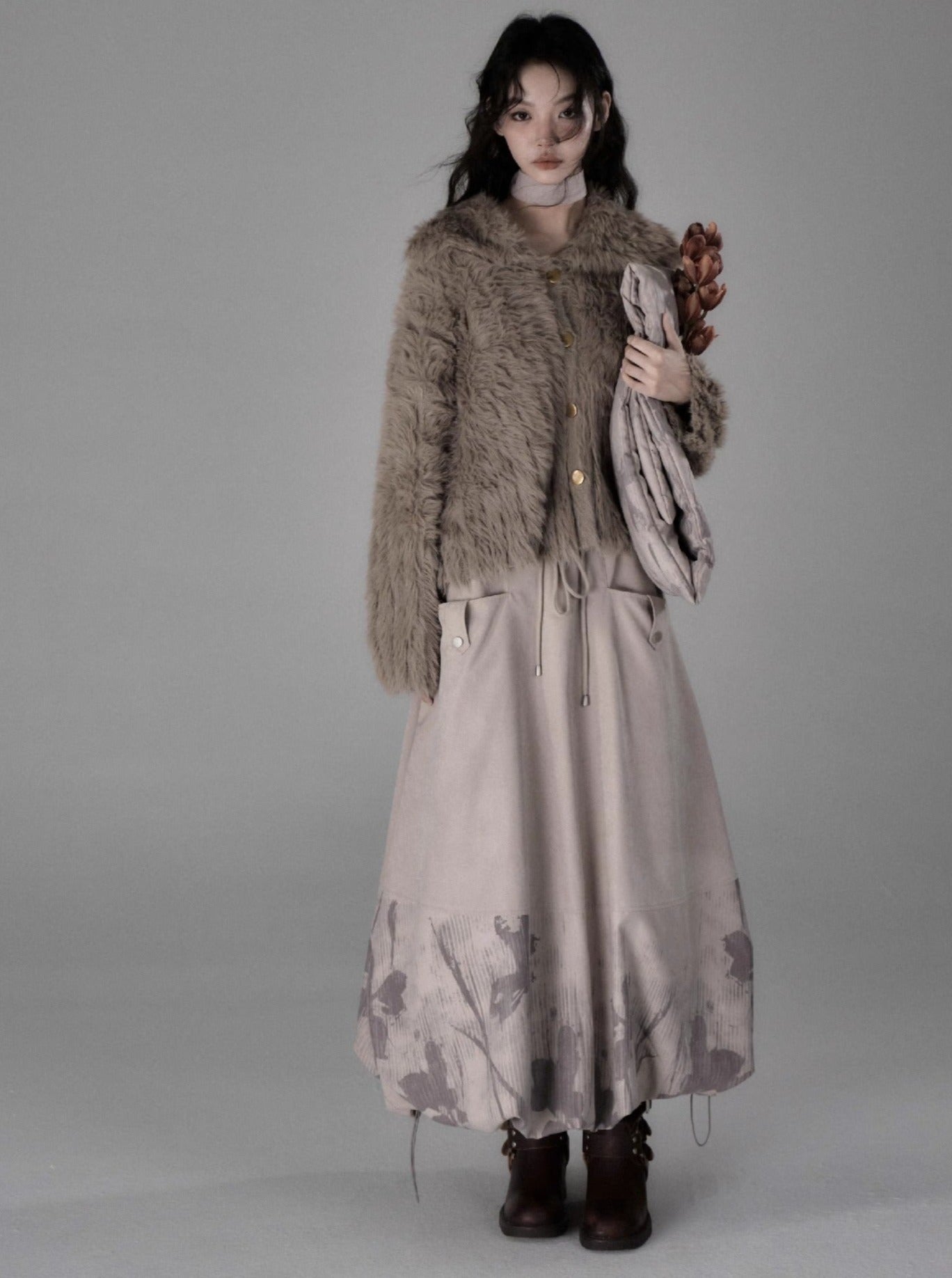 Shadow Printed Cotton Flower Bud Skirt