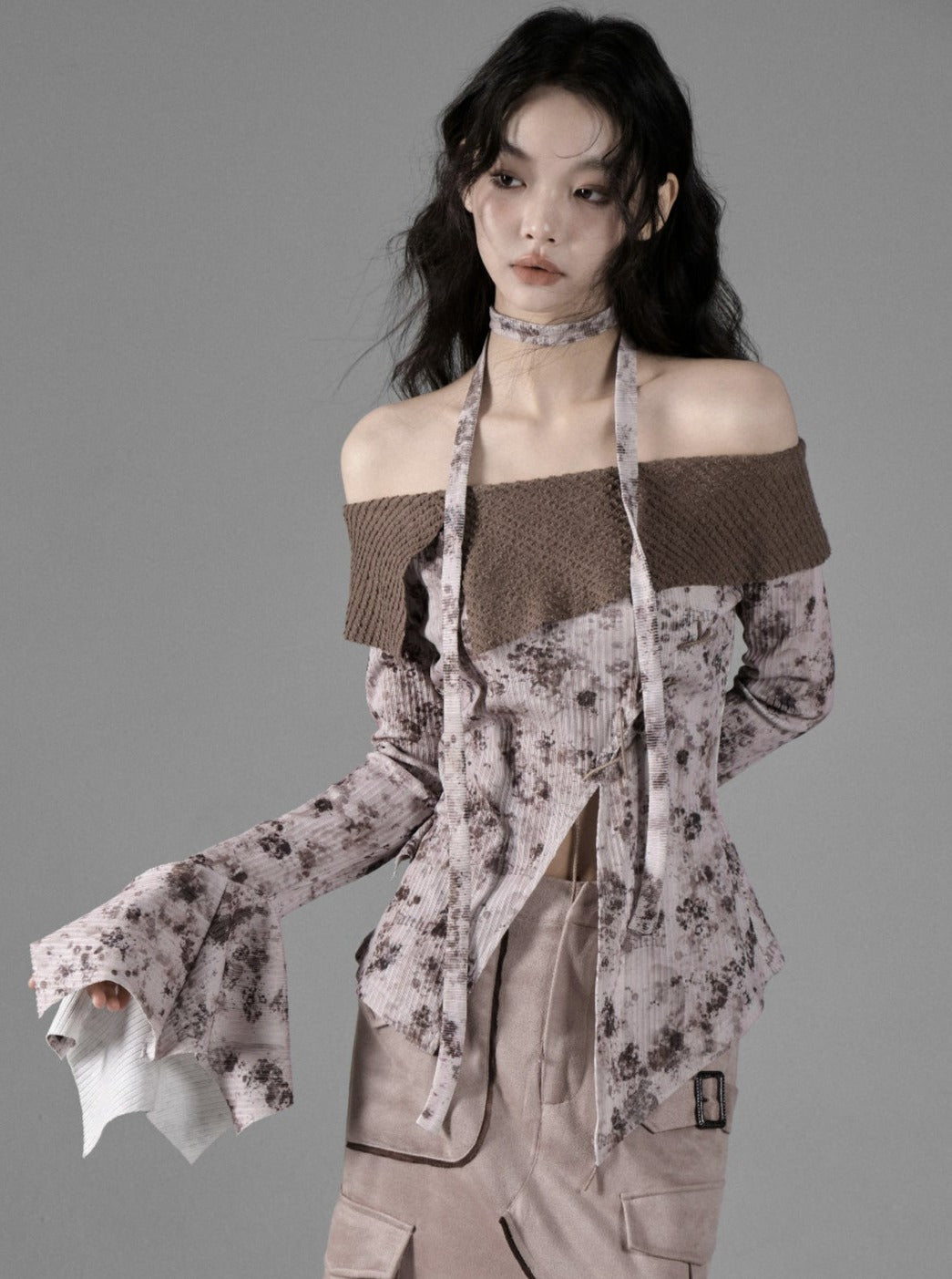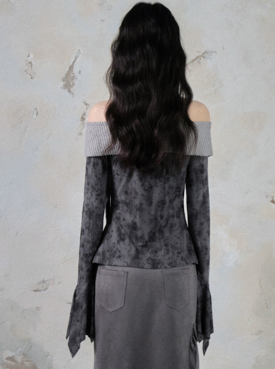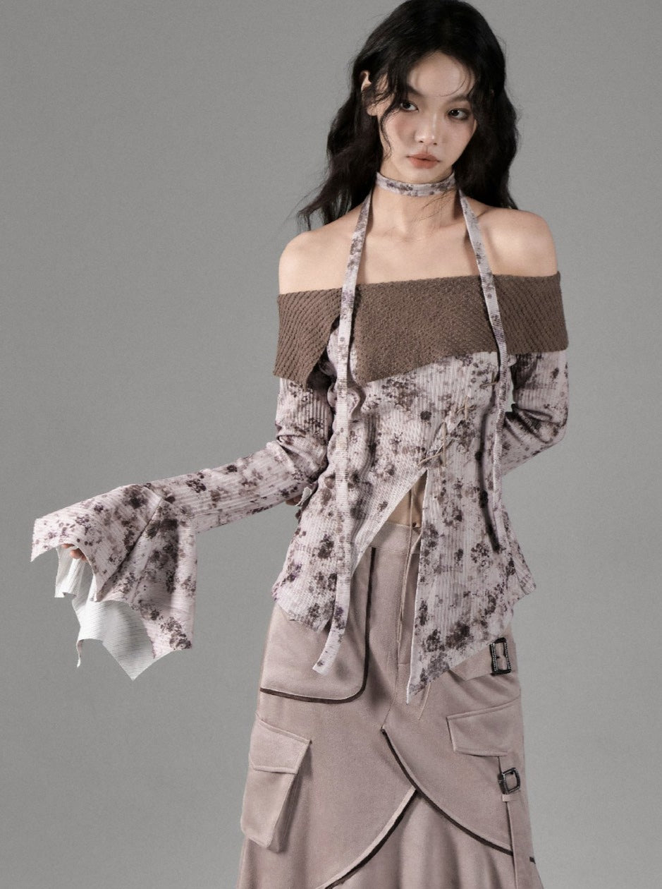 Straight Shoulder Cross Print Top