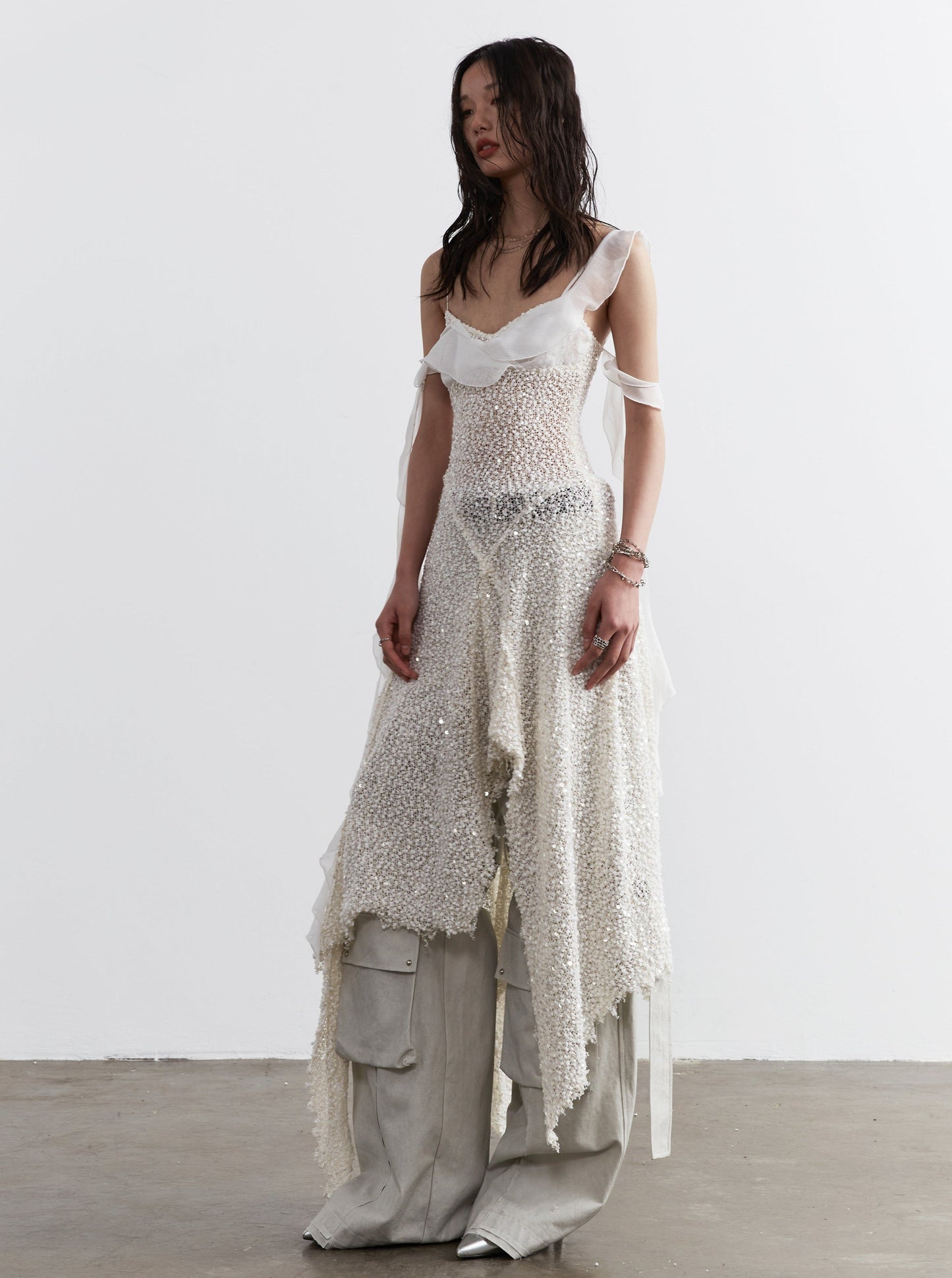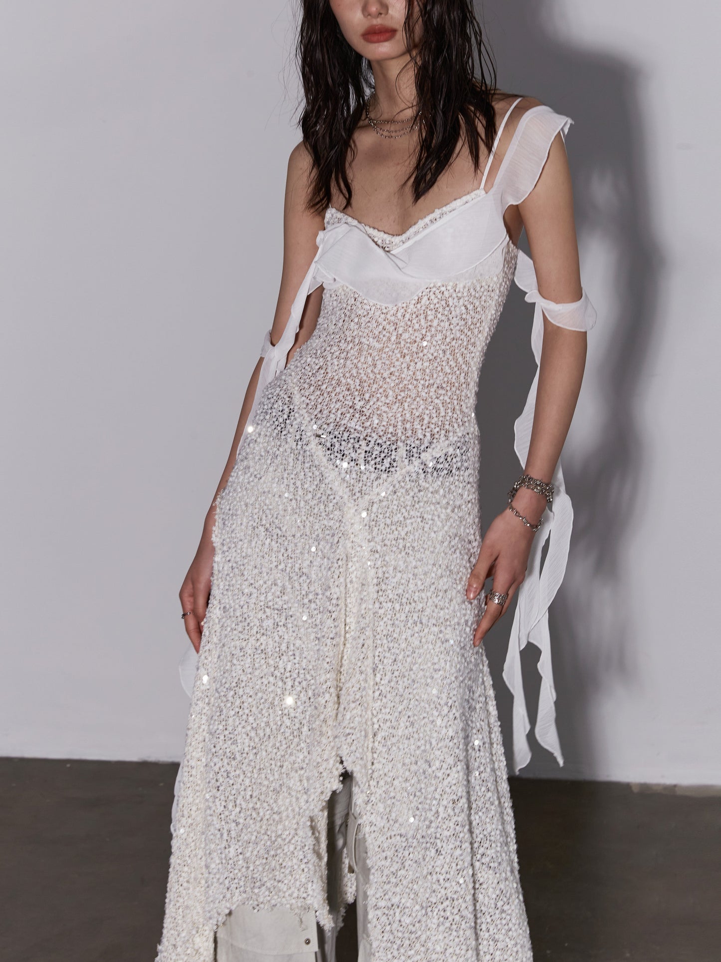 Sequined Irregular Suspender Dress