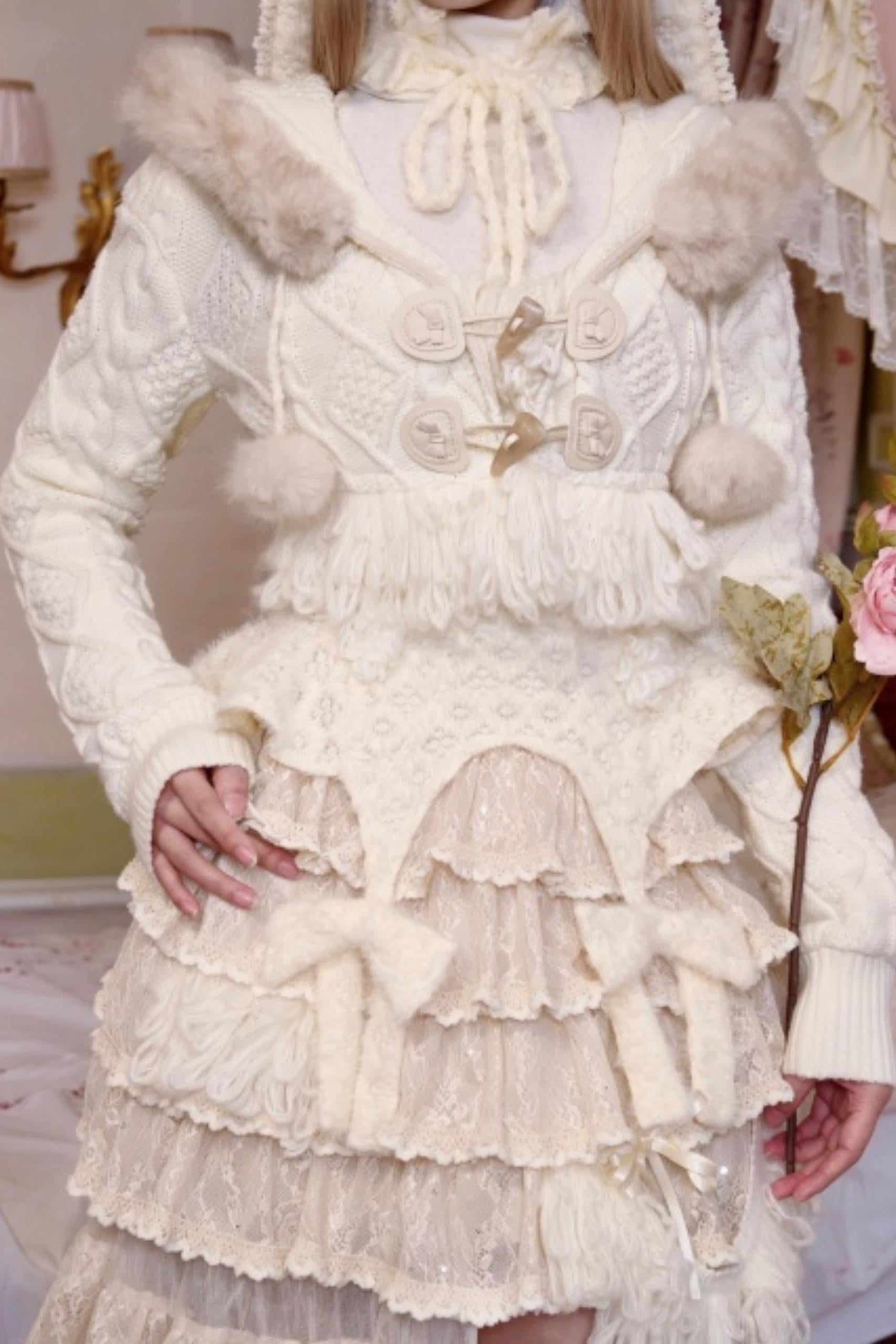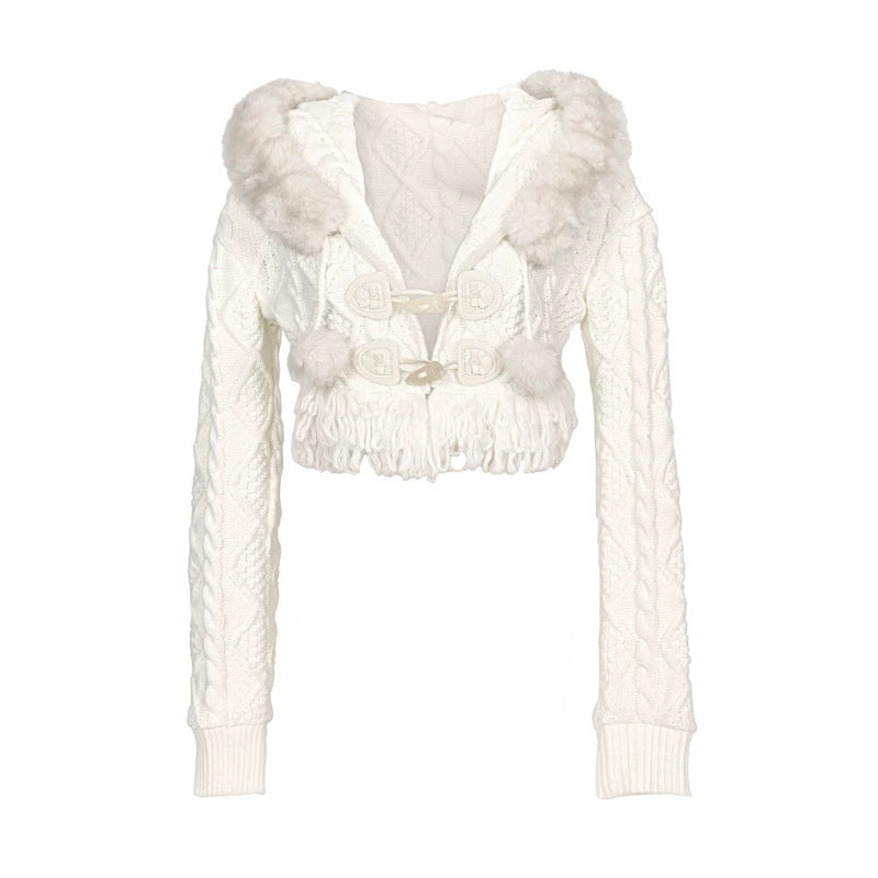 Slavic Knit Hooded Cardigan Hat Set-Up