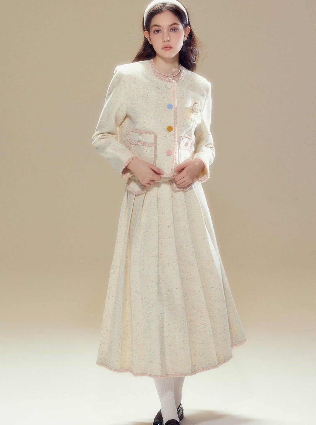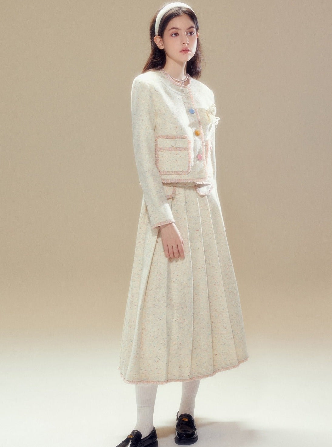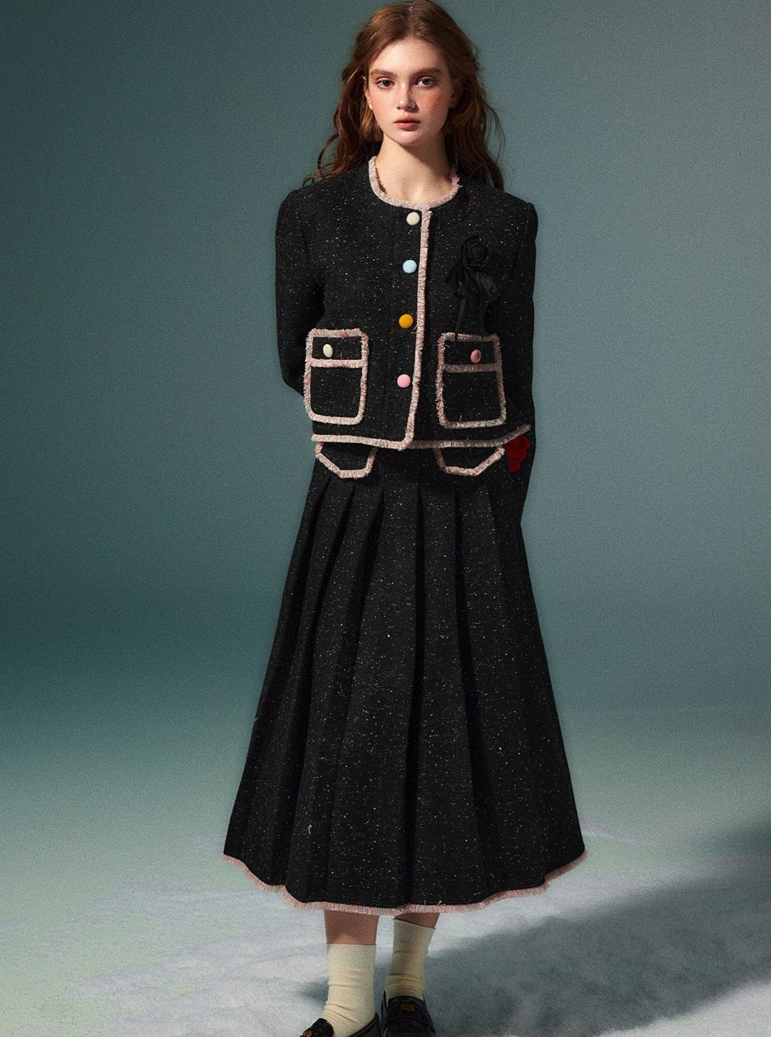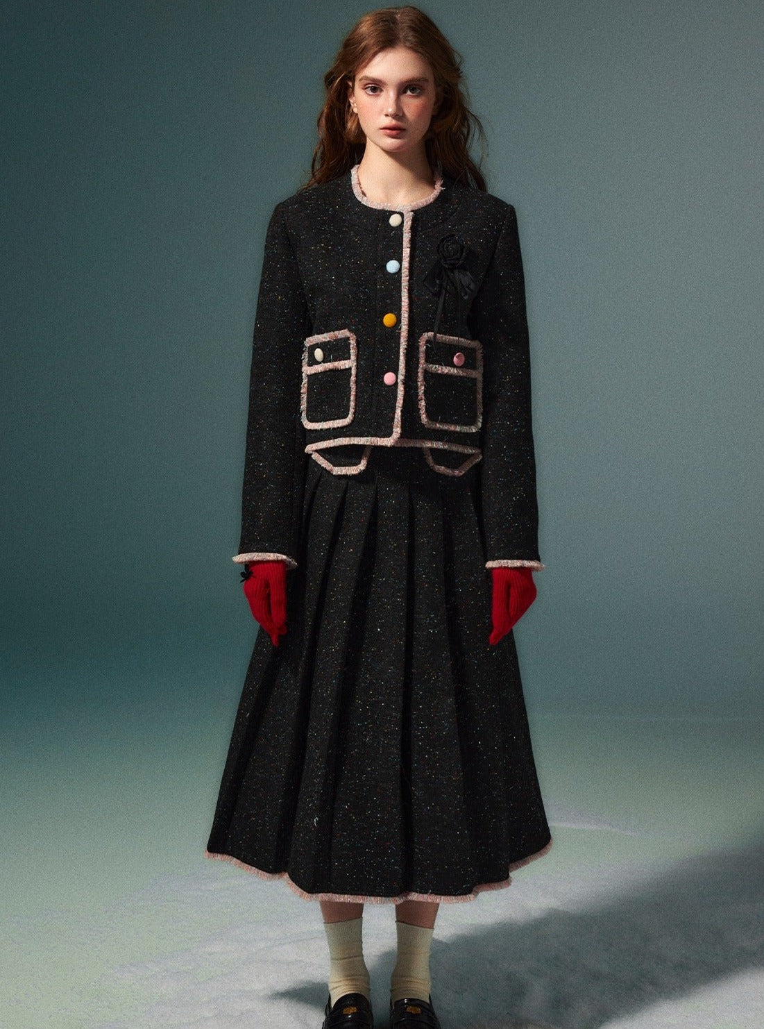 Wool coat pleated long skirt set