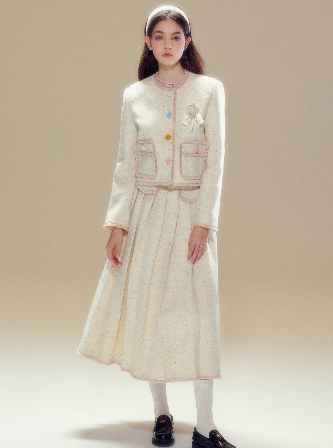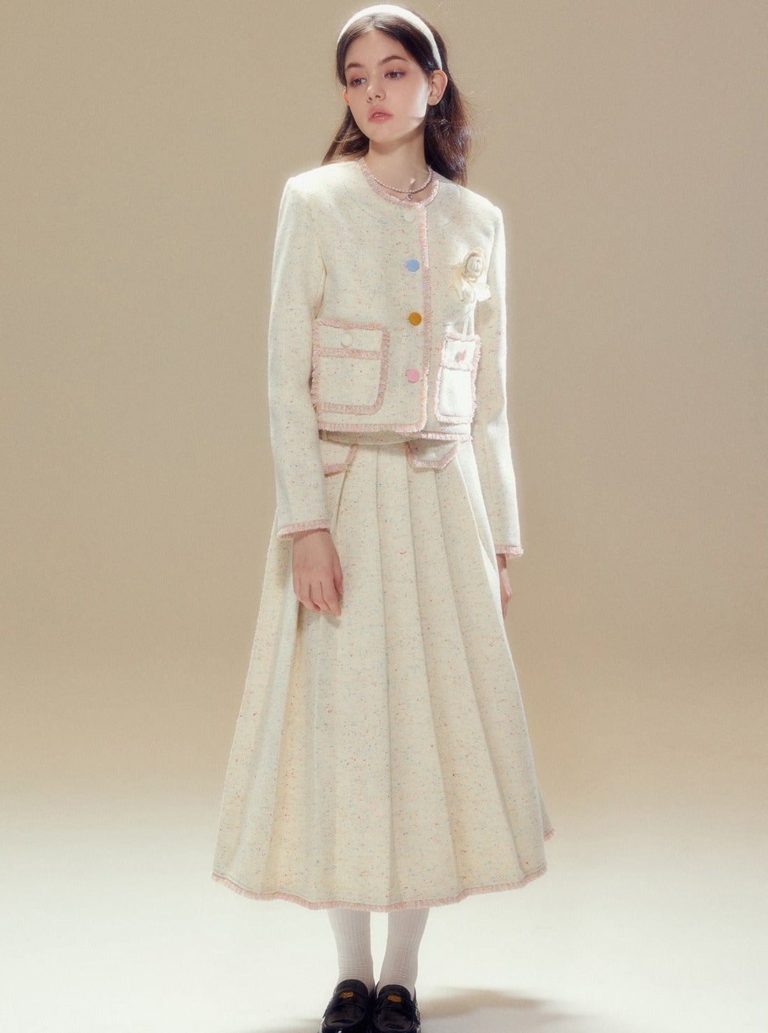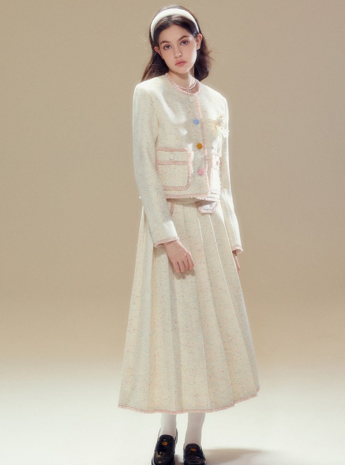 Wool coat pleated long skirt set