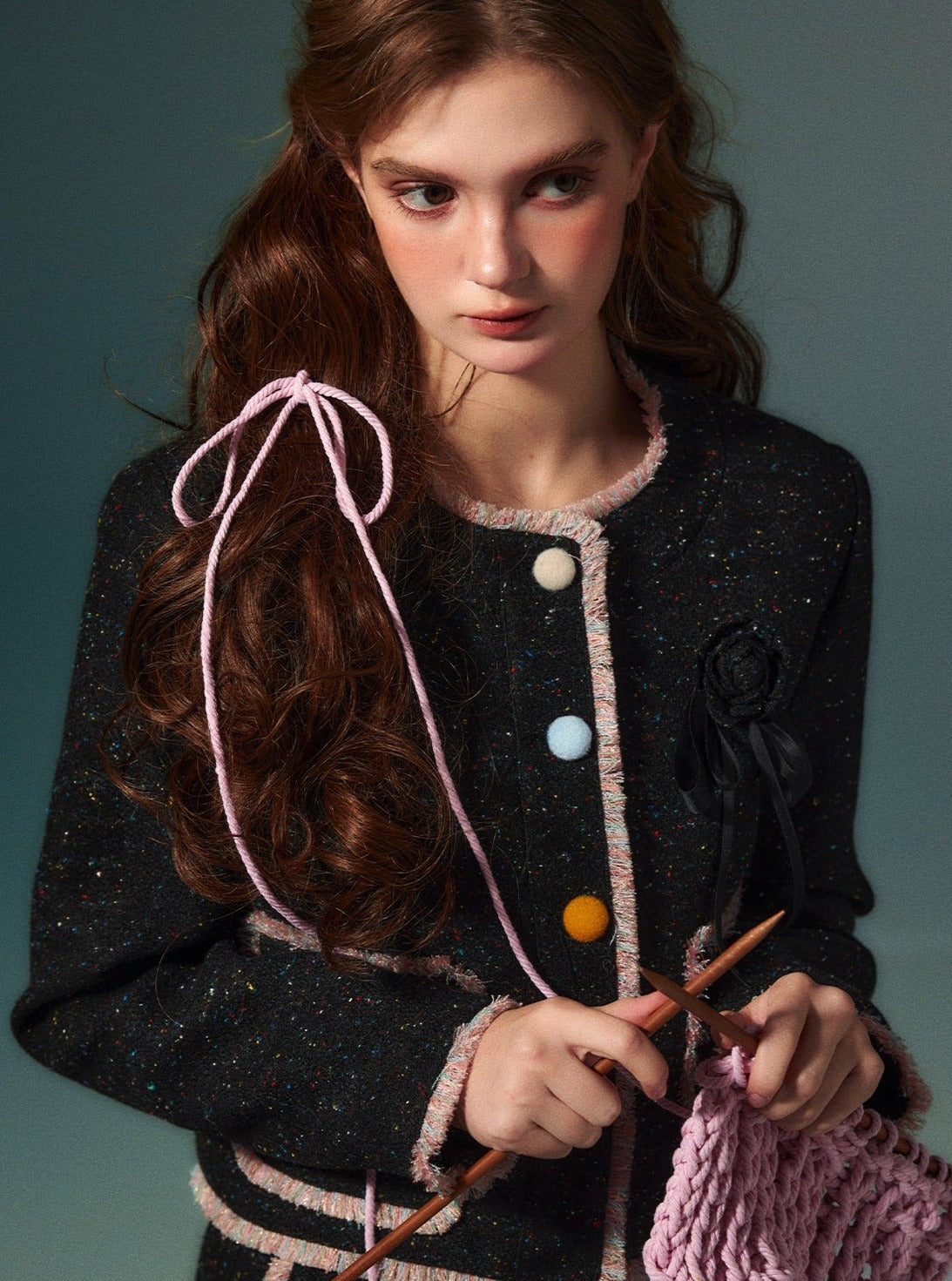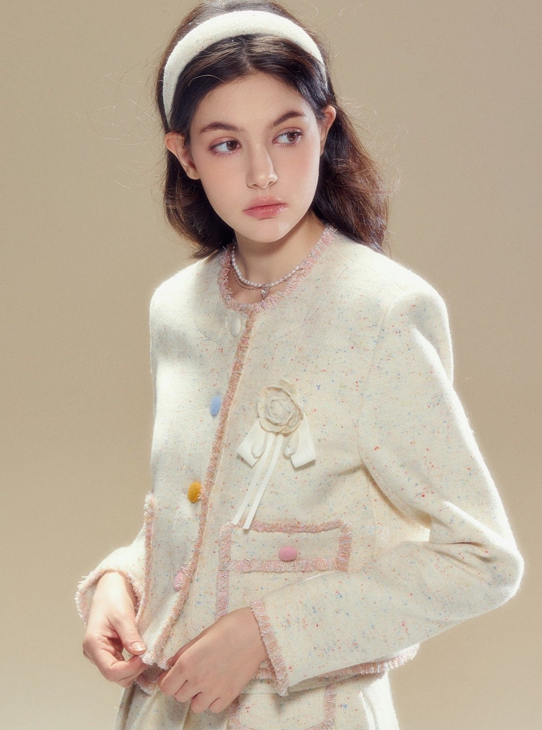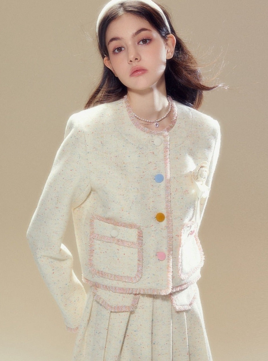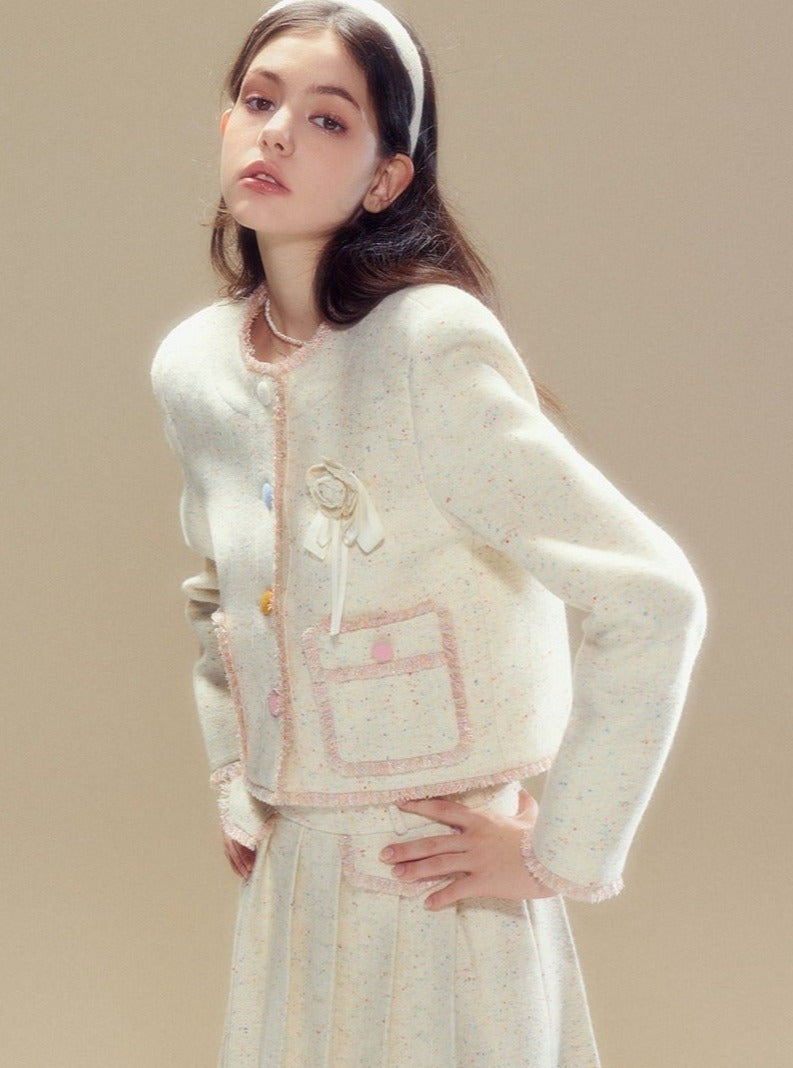 Wool coat pleated long skirt set