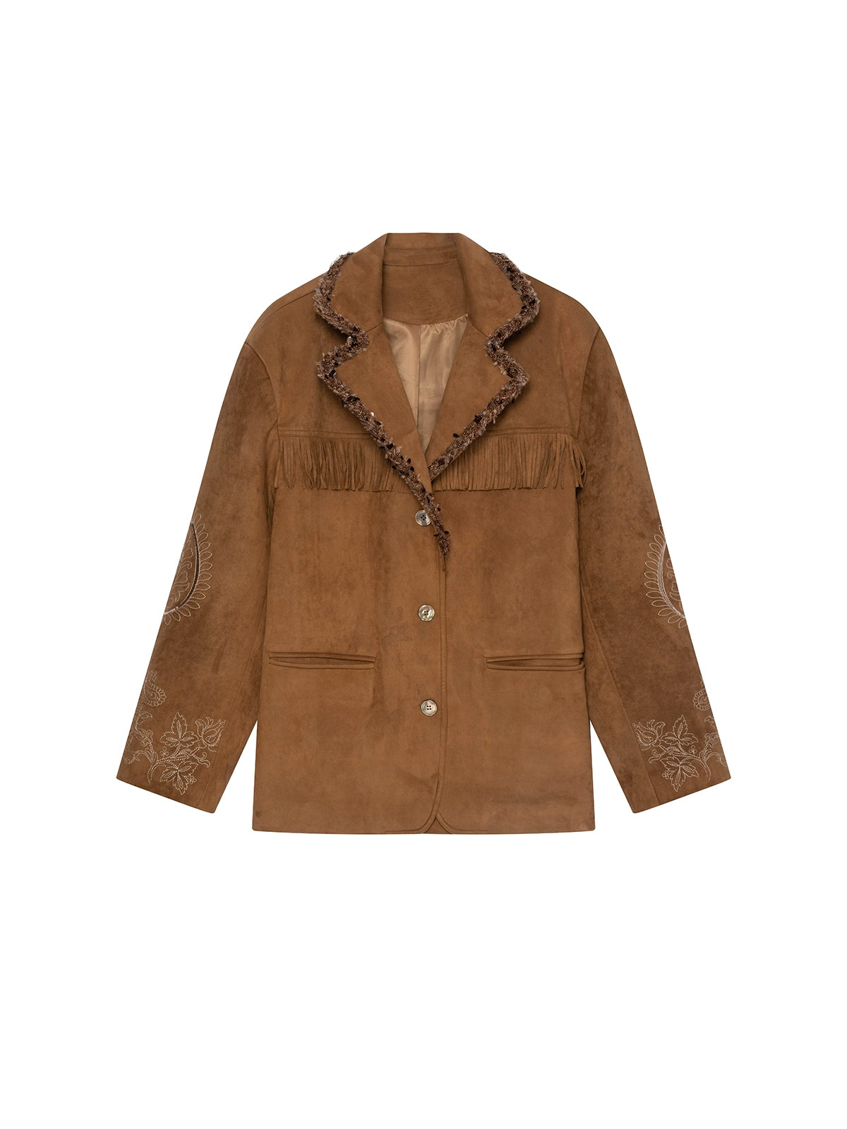 Sweet Bohemian Embroidery Fringed Blazer Set-Up