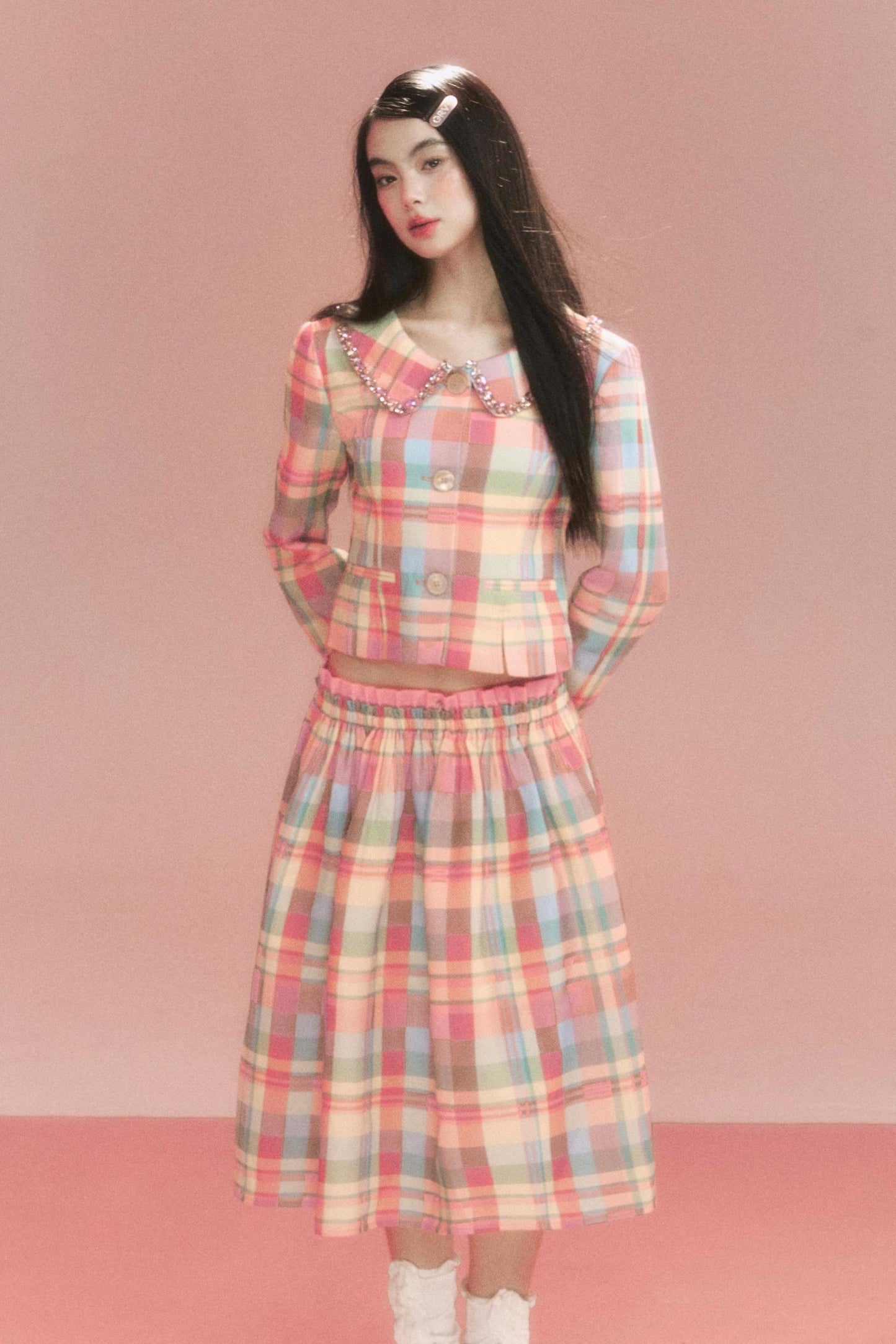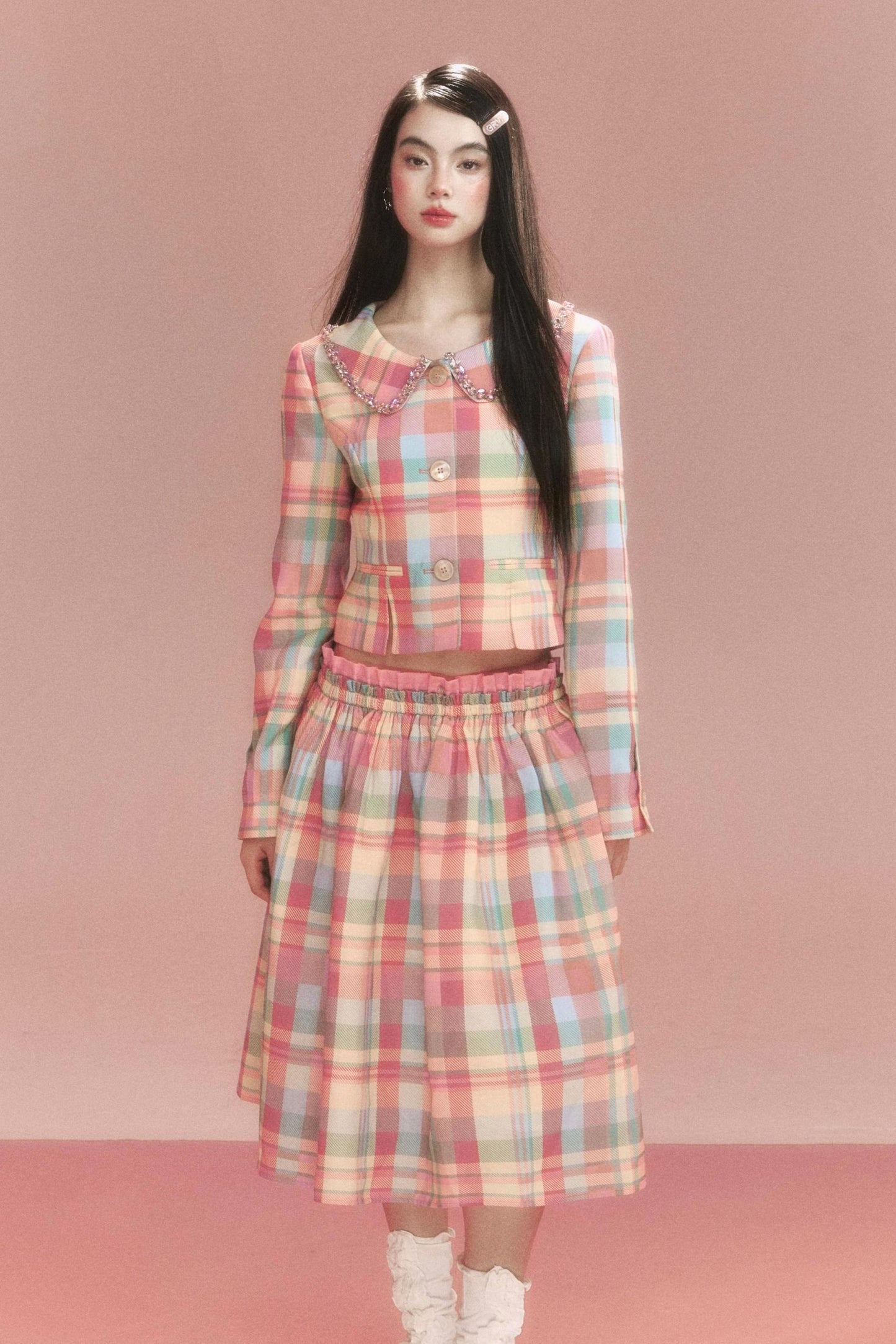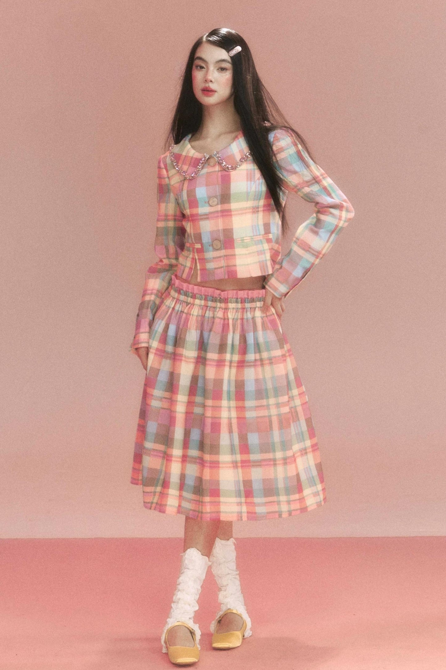 Sweet Vintage Check Jacket And Skirt Set-Up