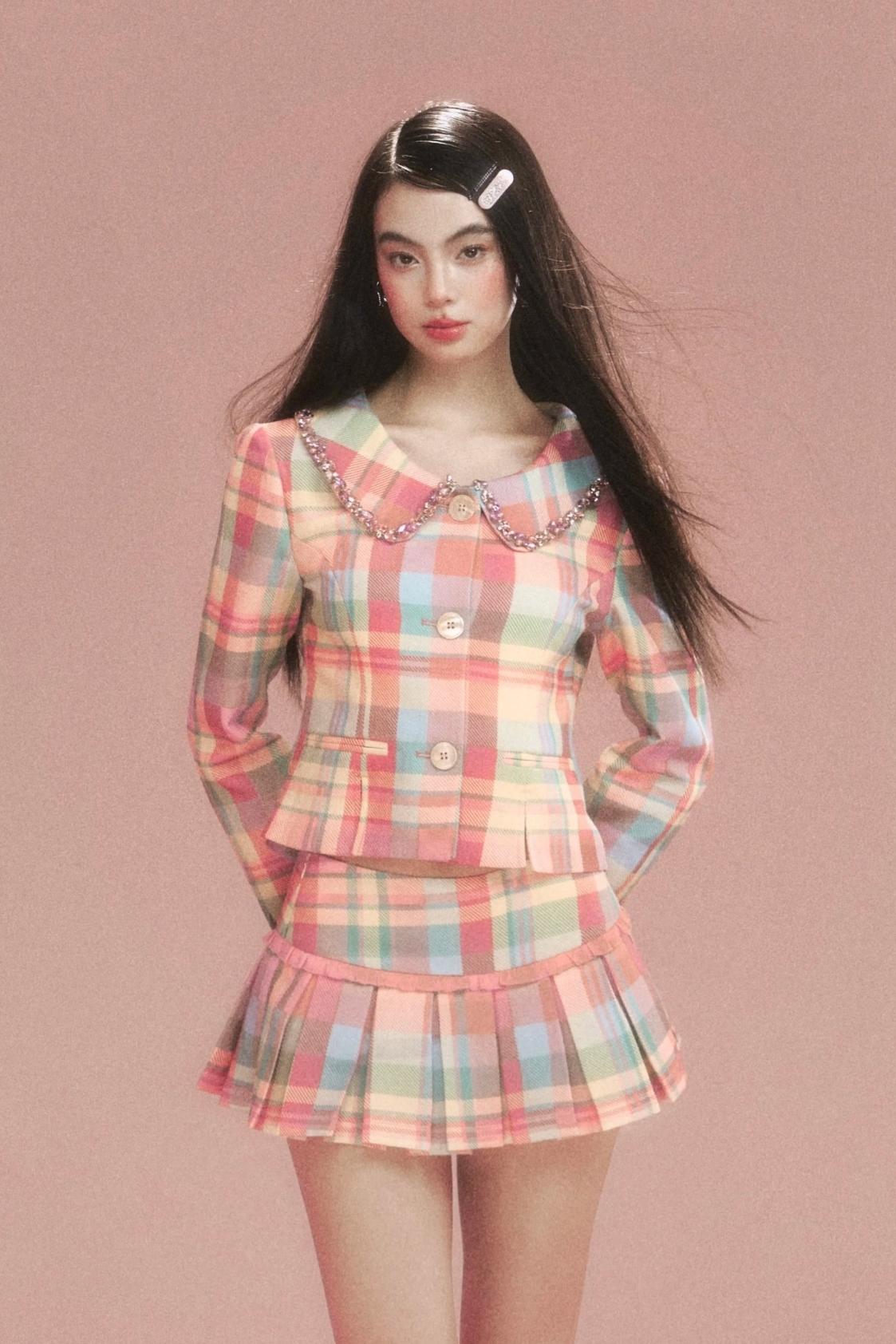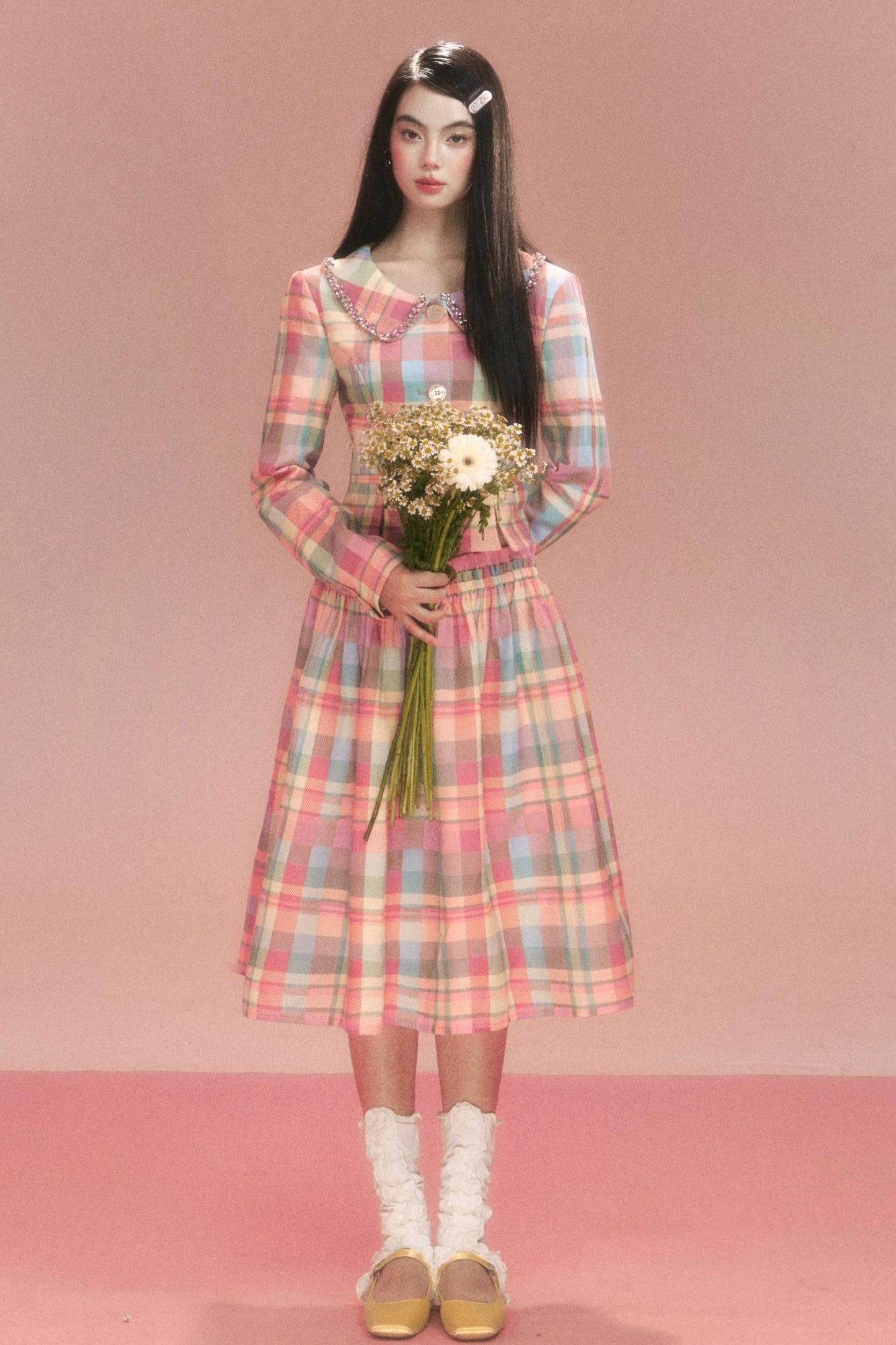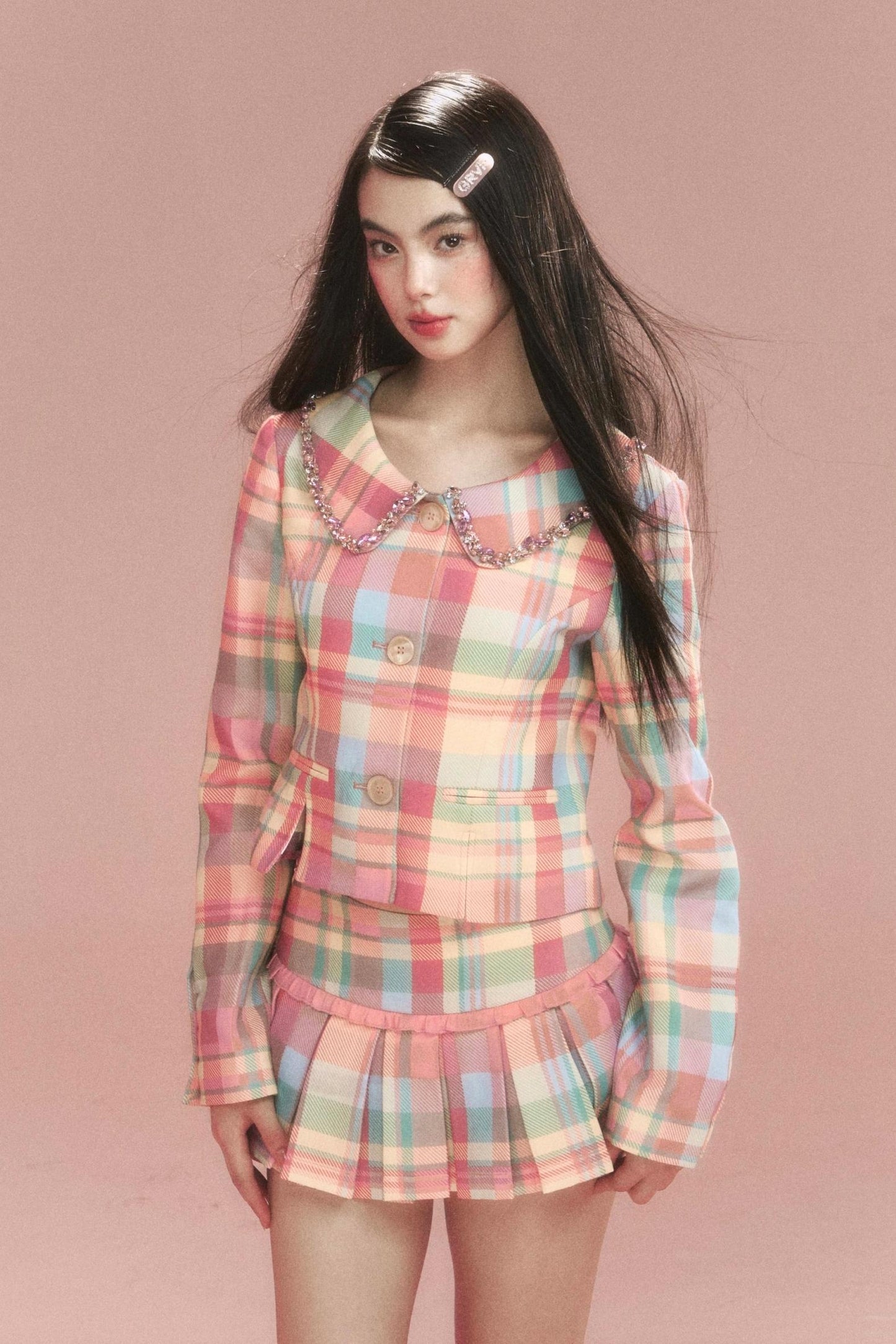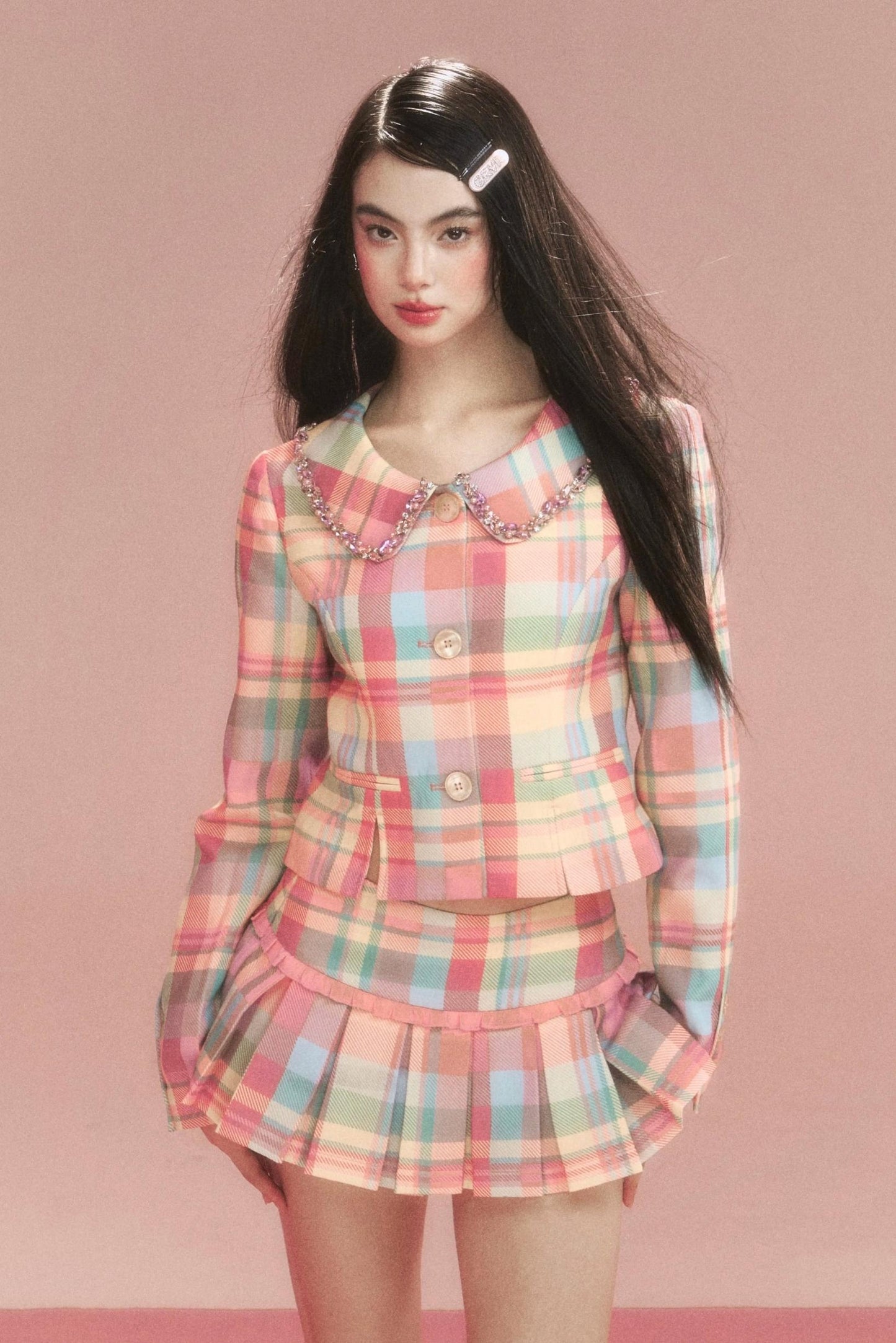 Sweet Vintage Check Jacket And Skirt Set-Up