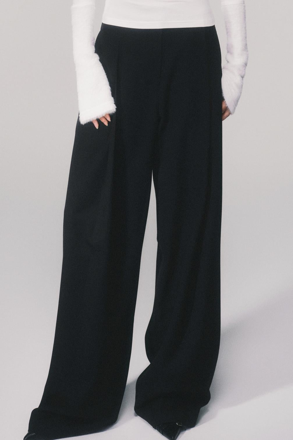 Tencel Wool High-Waisted Wide-Leg Pants