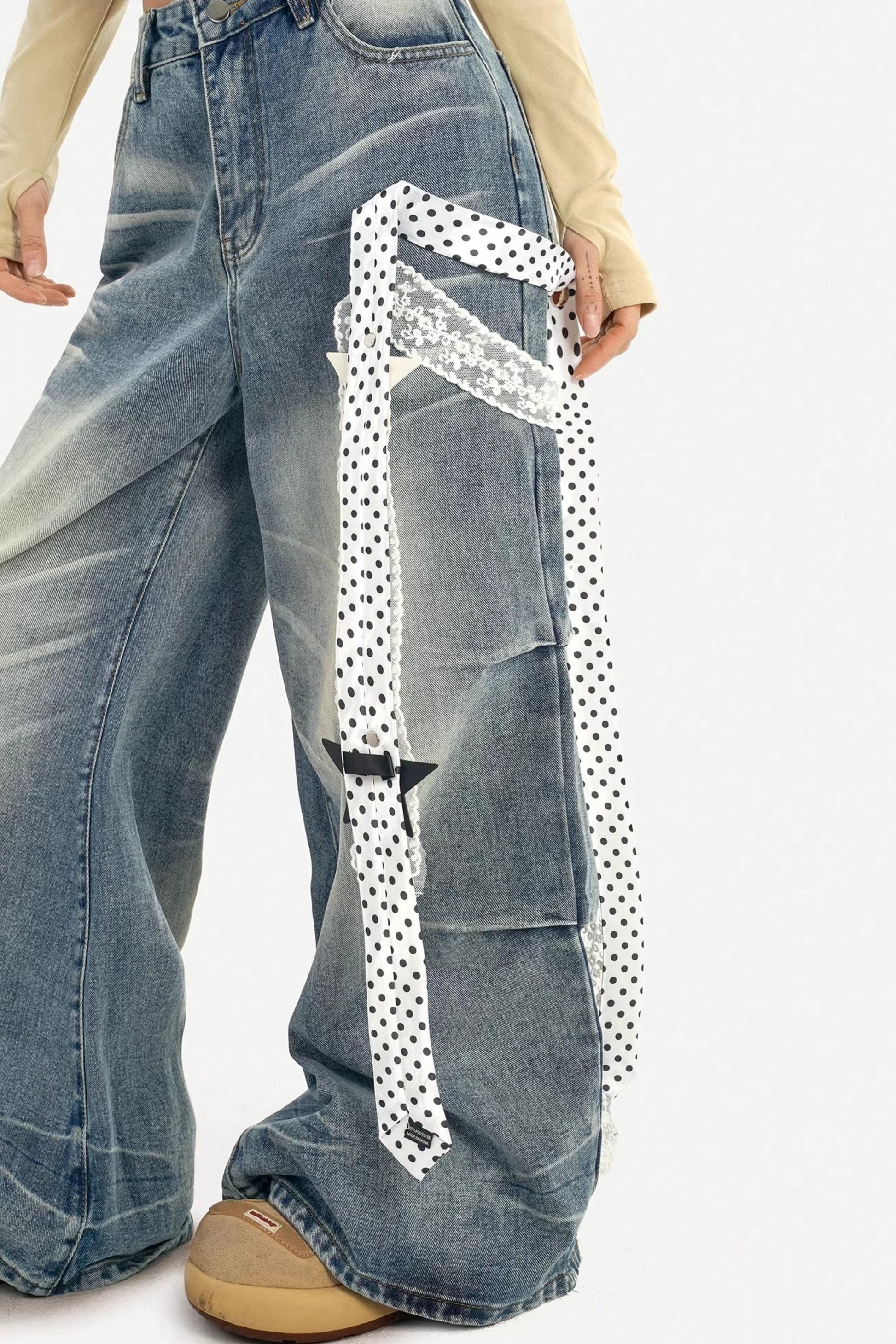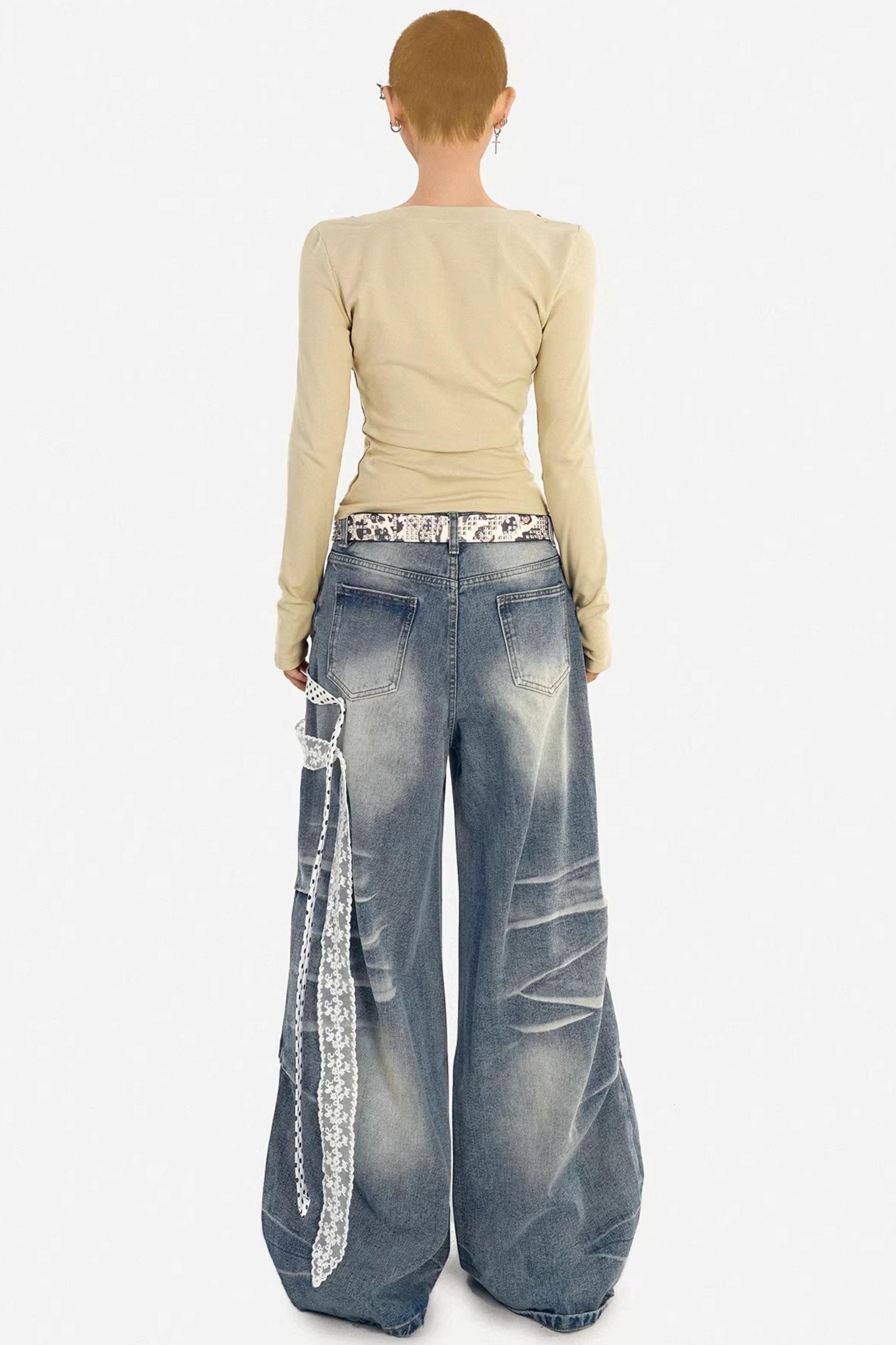 Textured Wide-Leg Denim Pants