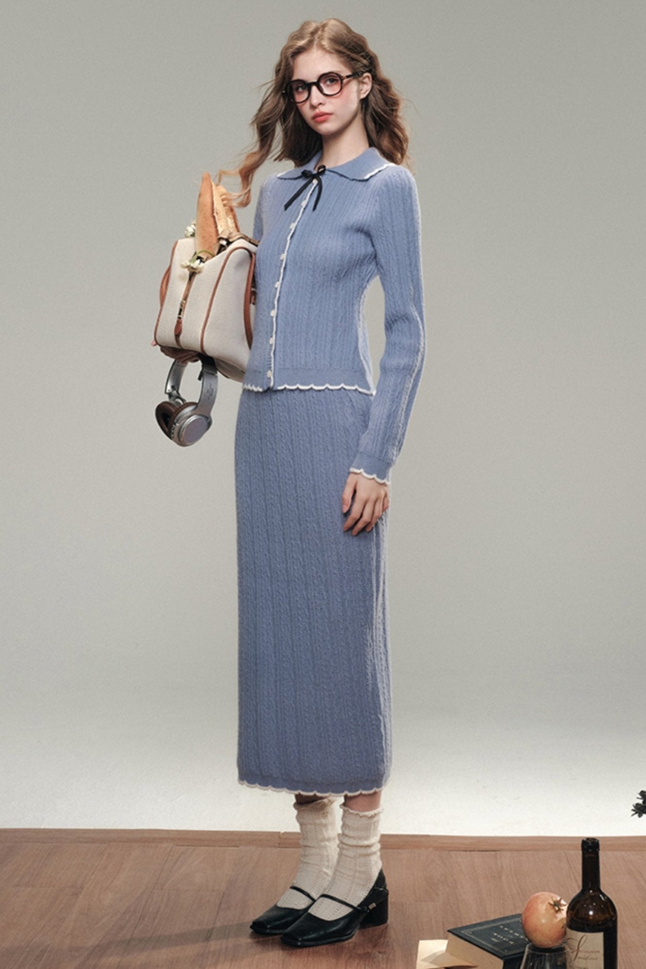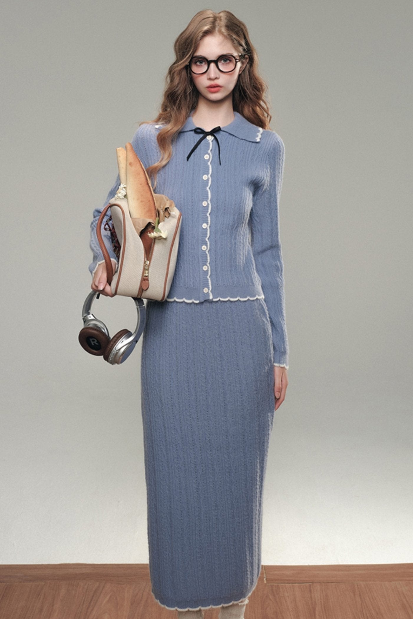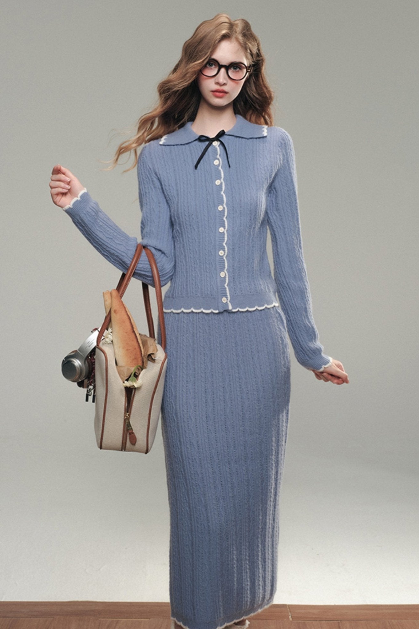 Tranquility Blue Knitted Cardigan Skirt Set-Up
