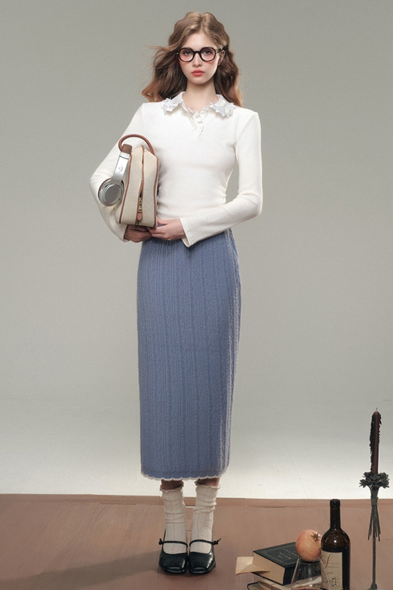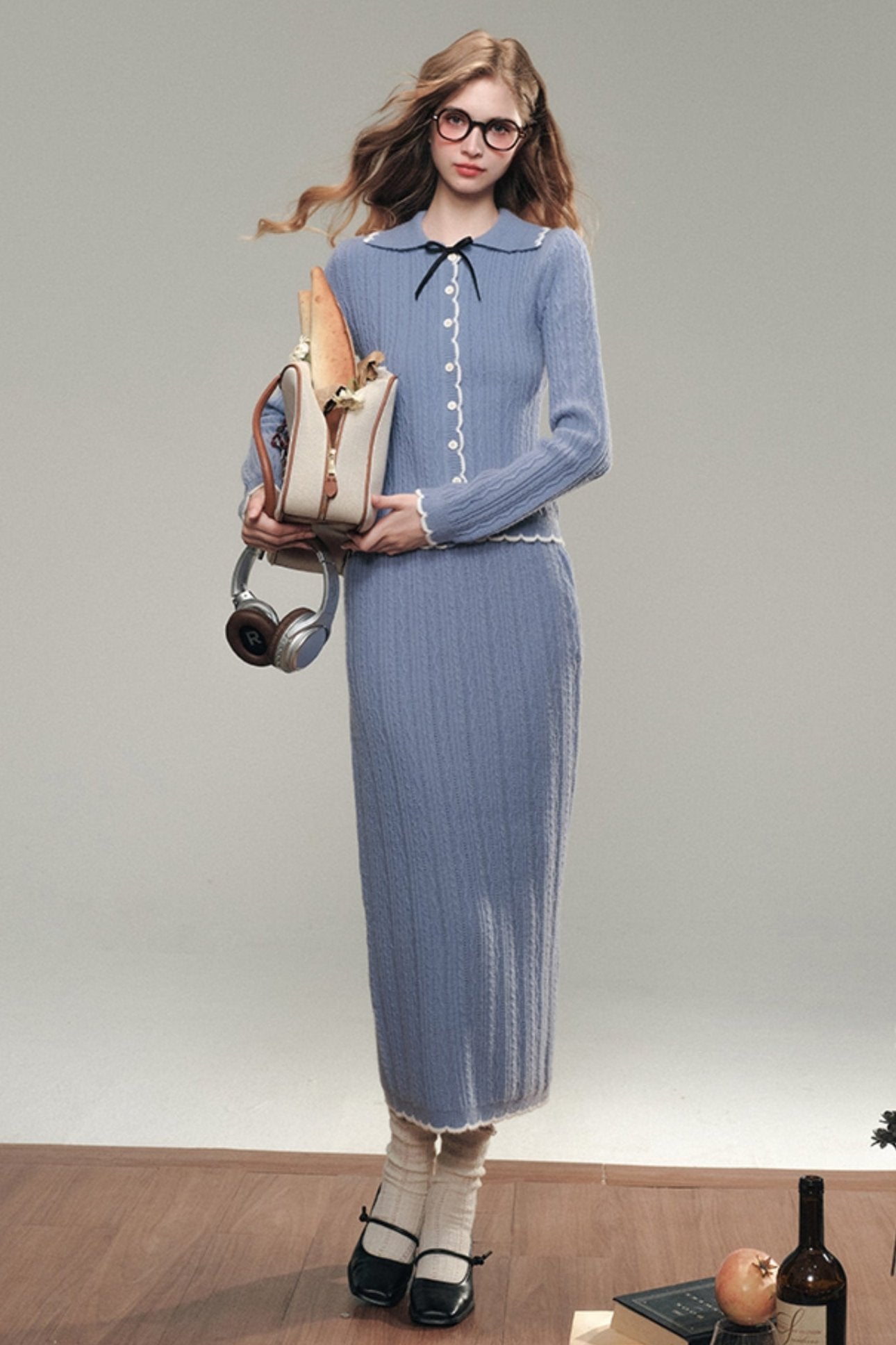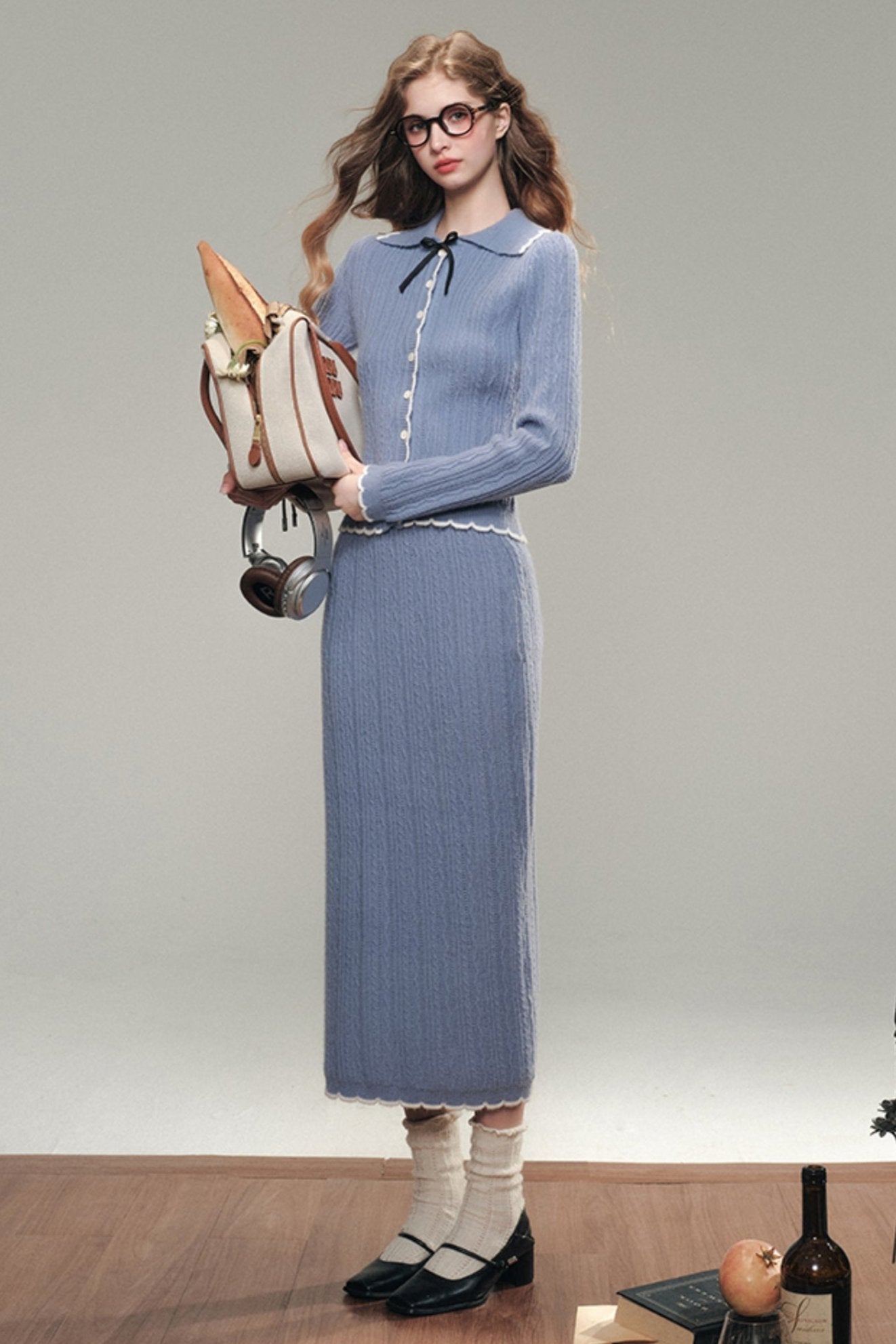 Tranquility Blue Knitted Cardigan Skirt Set-Up