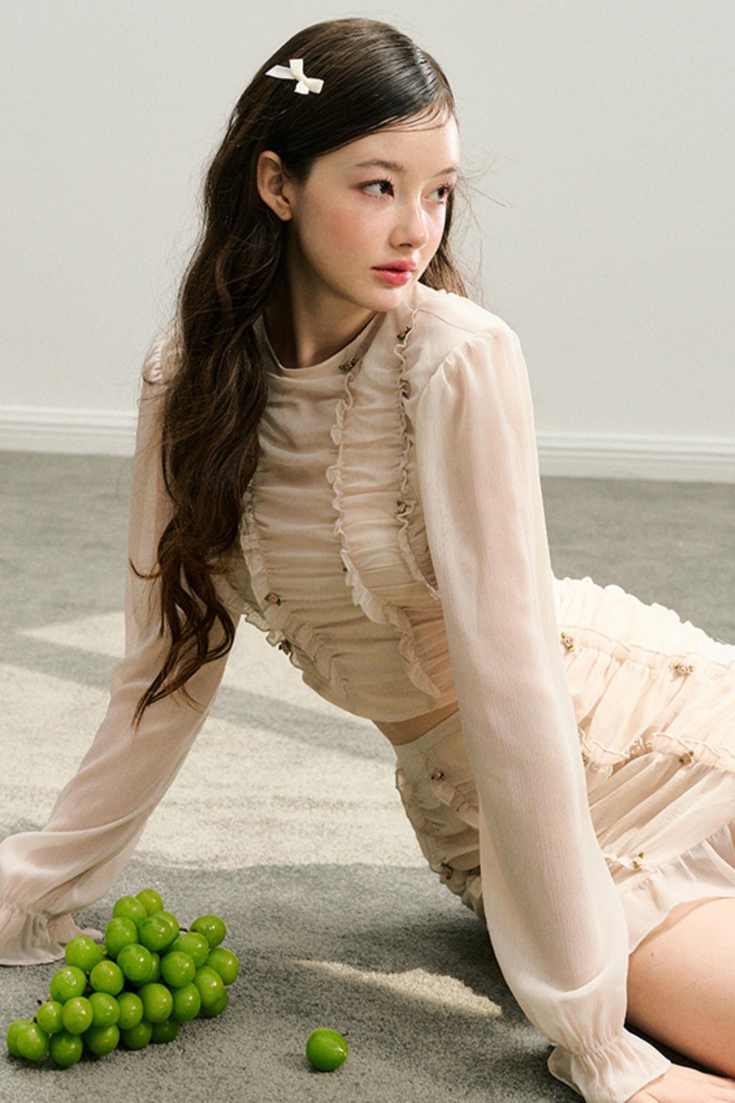 | サイズ | 胸囲(㎝/in) | ウエスト(㎝/in) | 袖丈(㎝/in) | 後中心丈(㎝/in) |