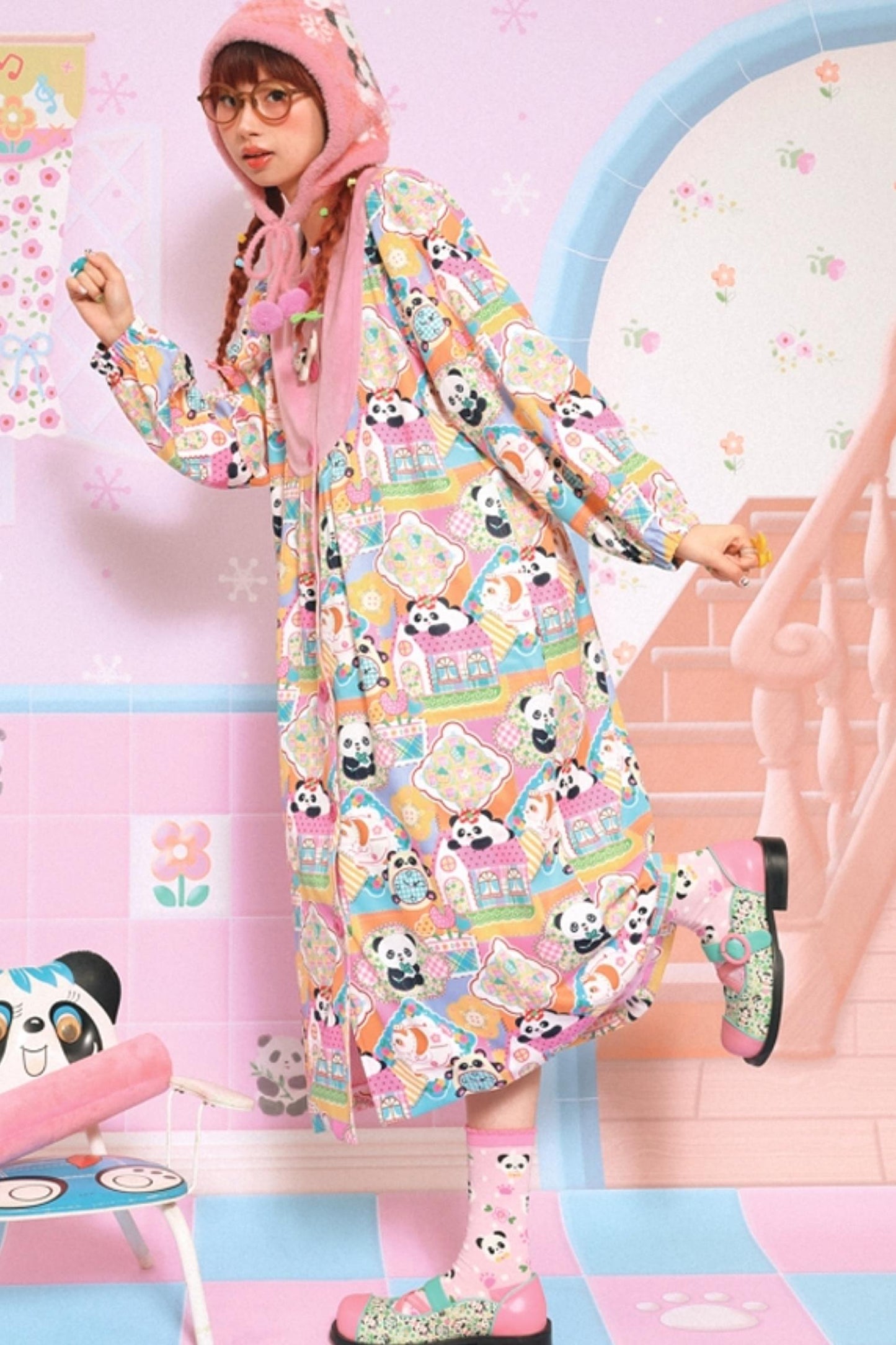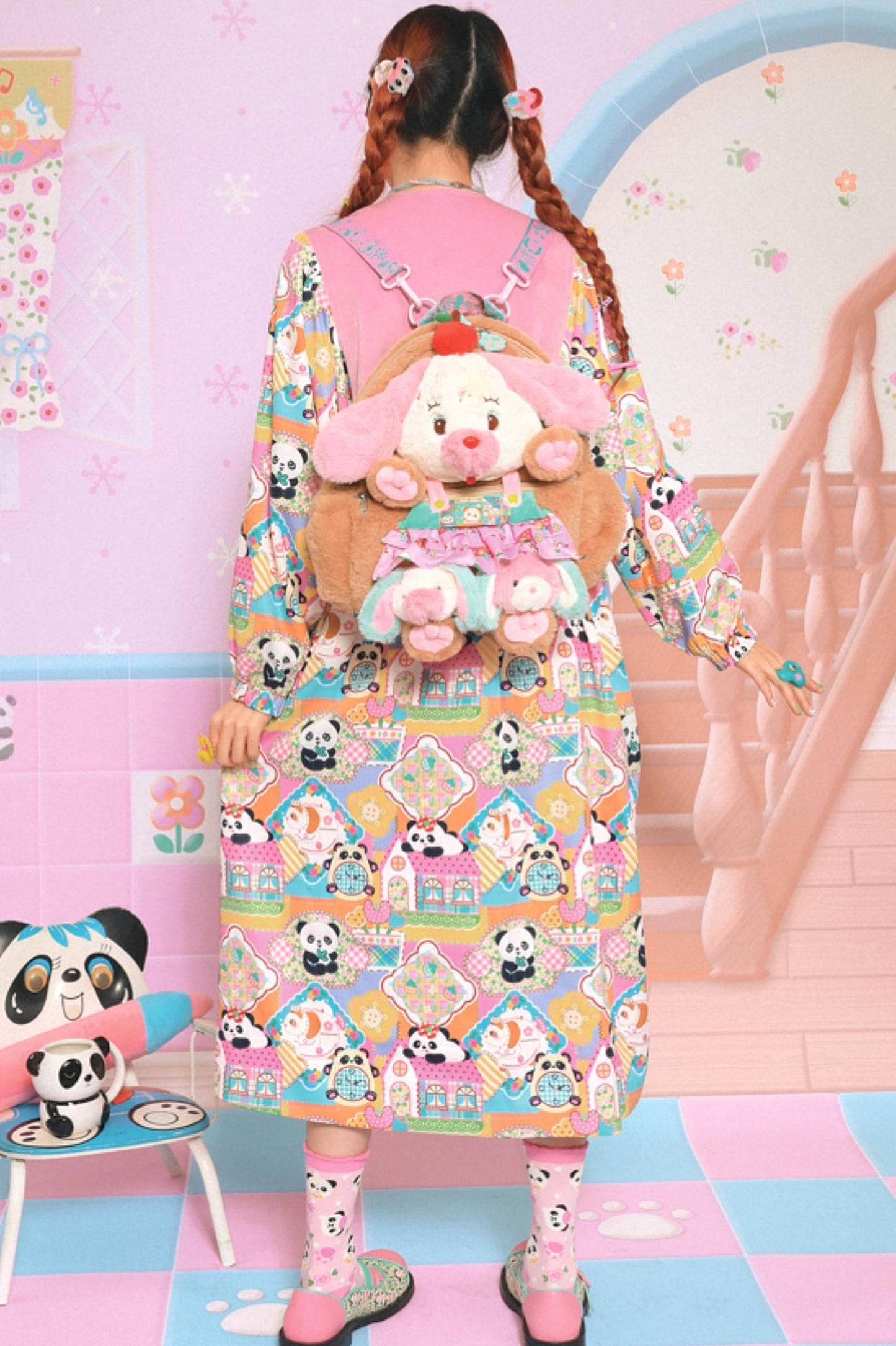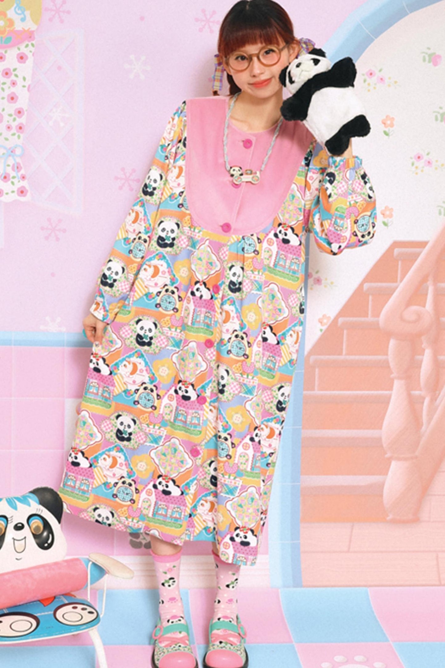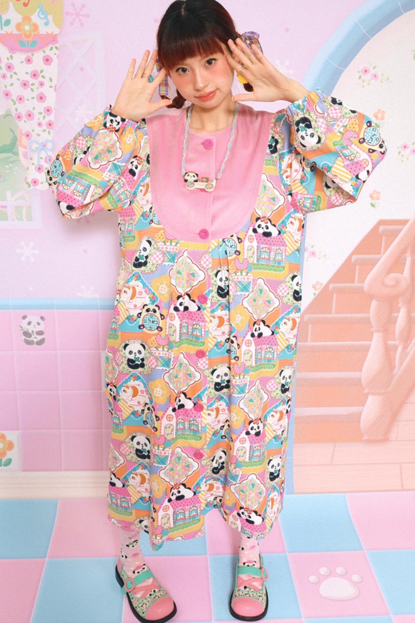 Velvet Patchwork Panda Coat Dress