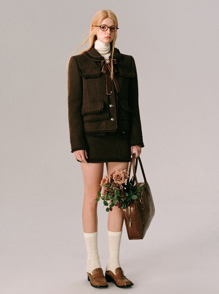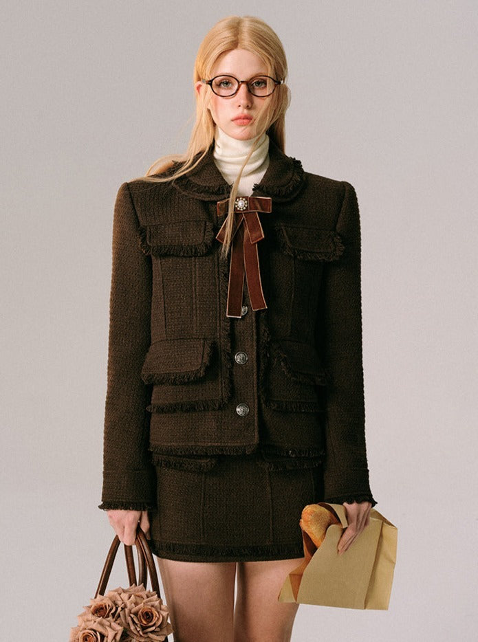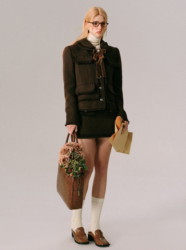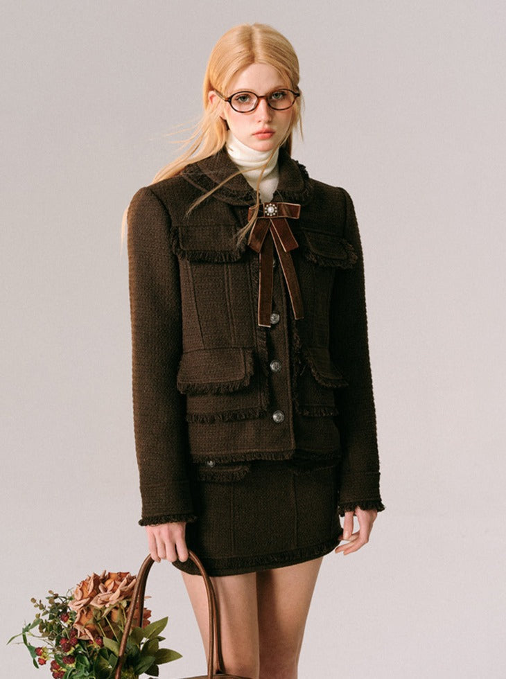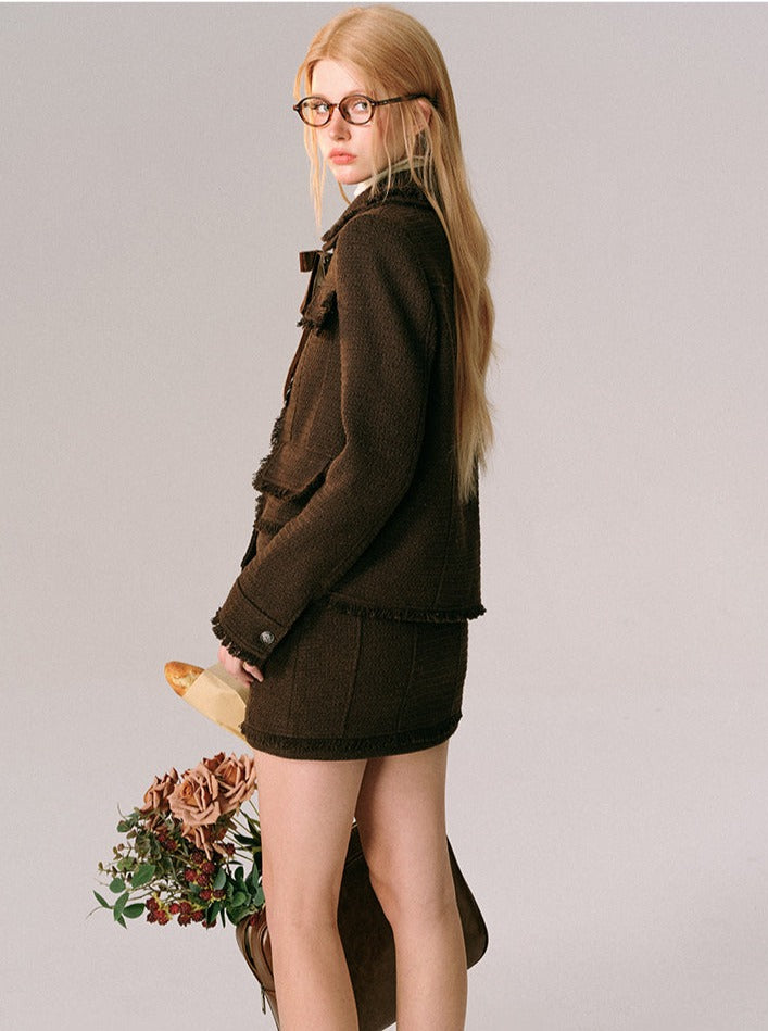 Chocolate Velvet Rose Jacket Skirt Set