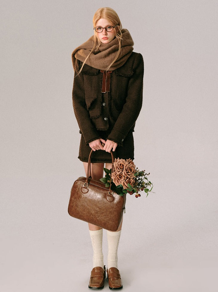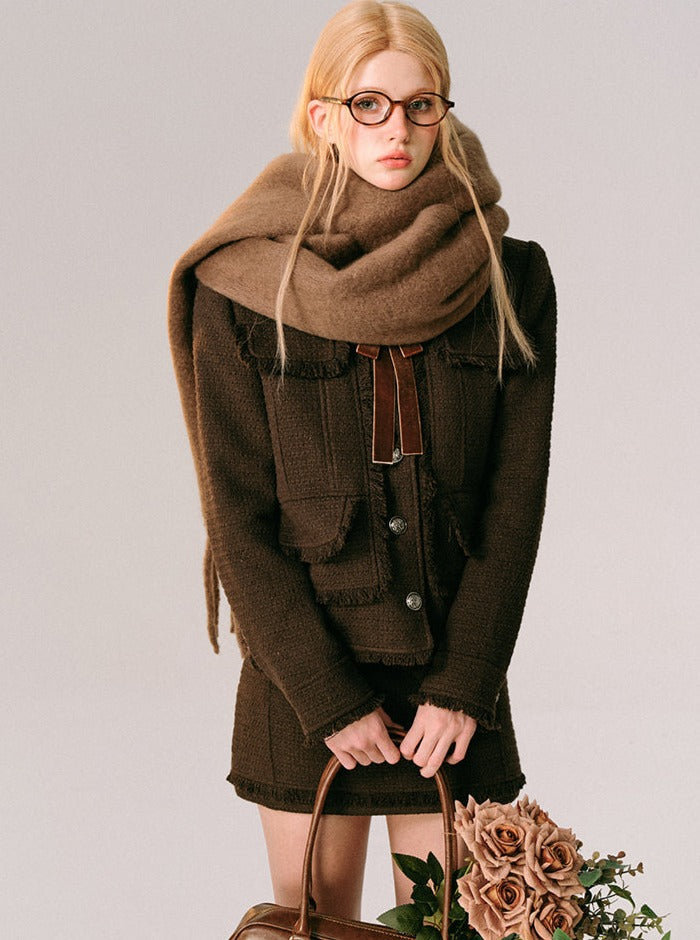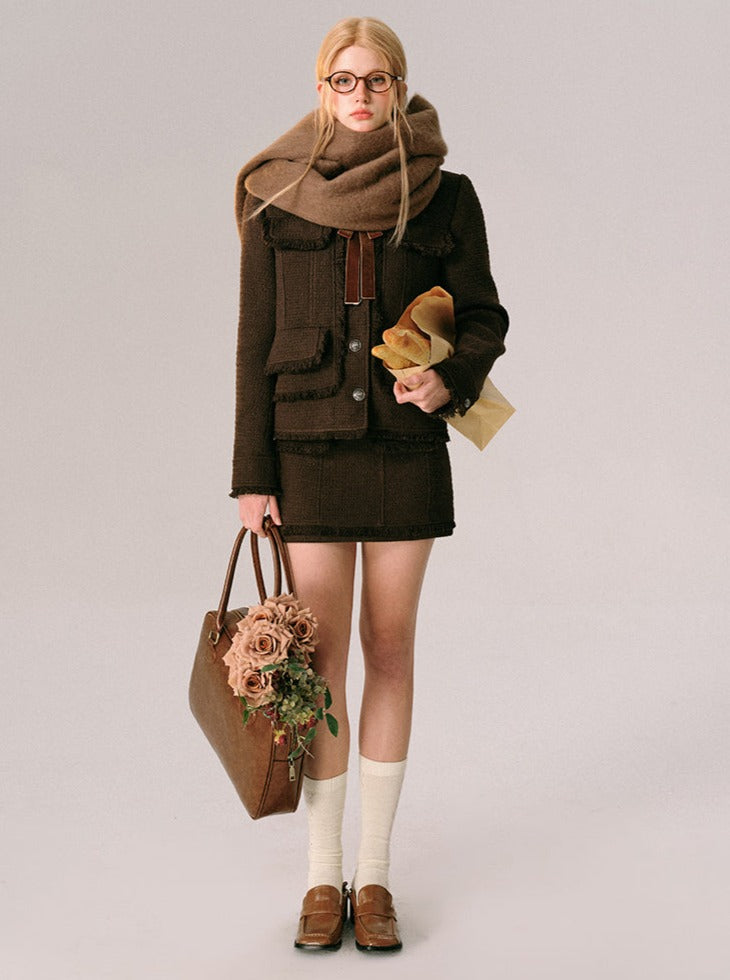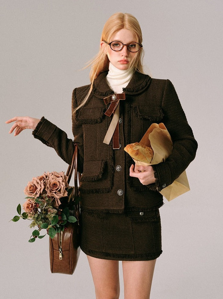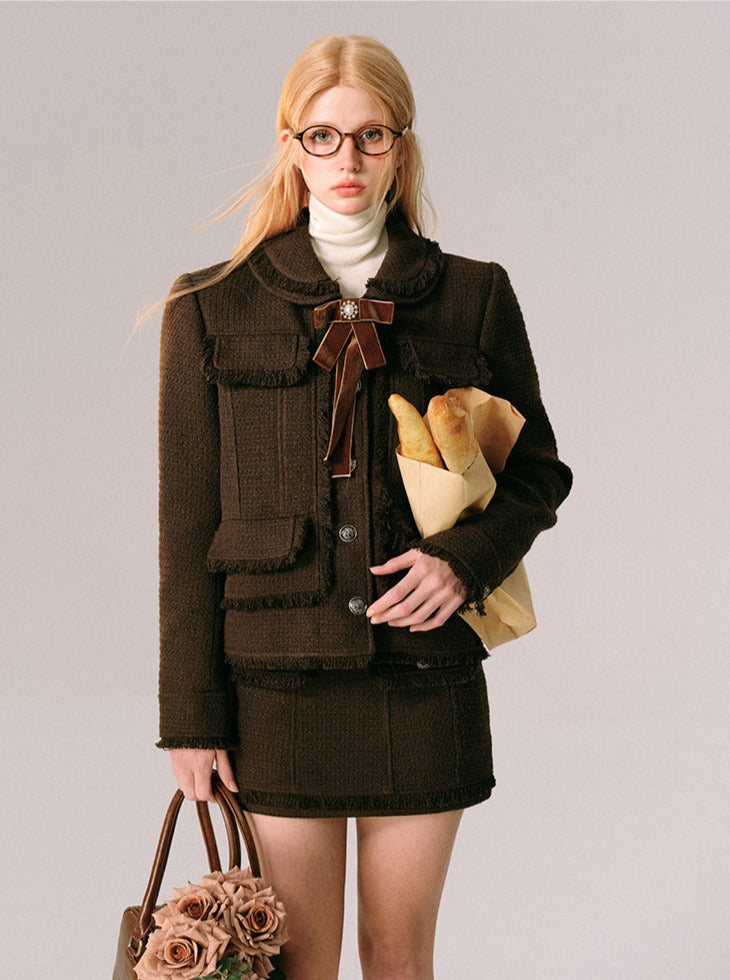 Chocolate Velvet Rose Jacket Skirt Set