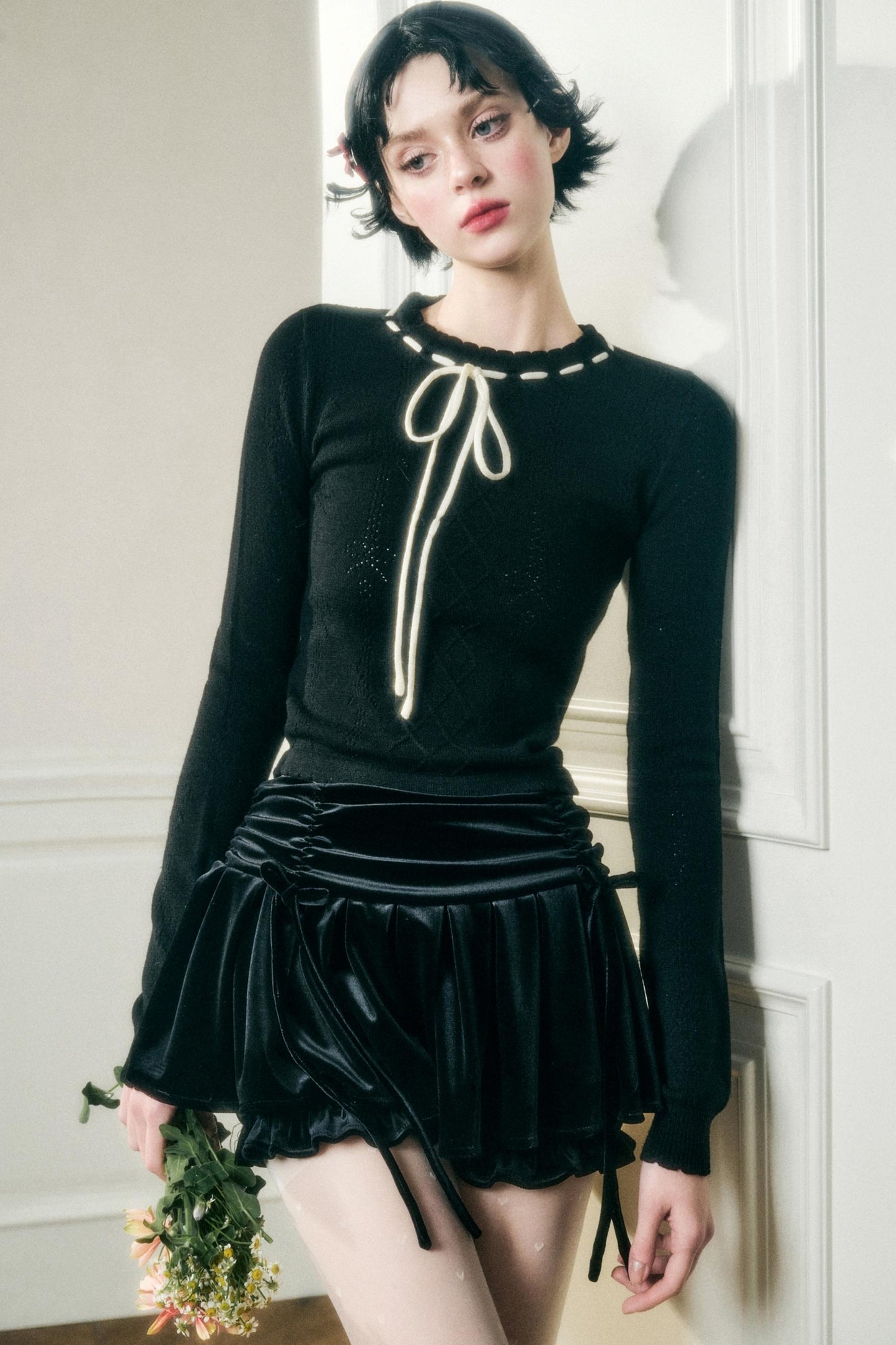 Waxy Texture Crew Knit Top