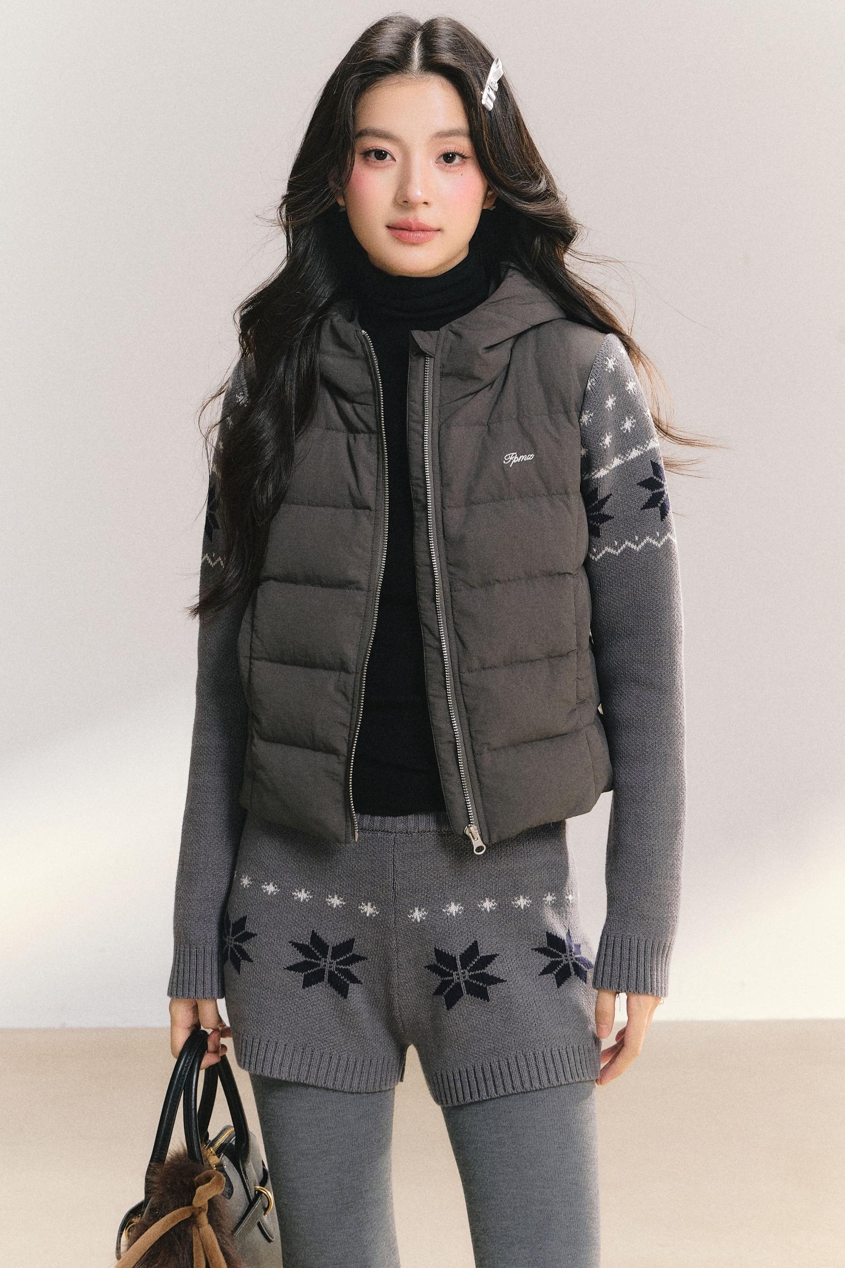White Duck Down Ribbed Jacket Set-Up