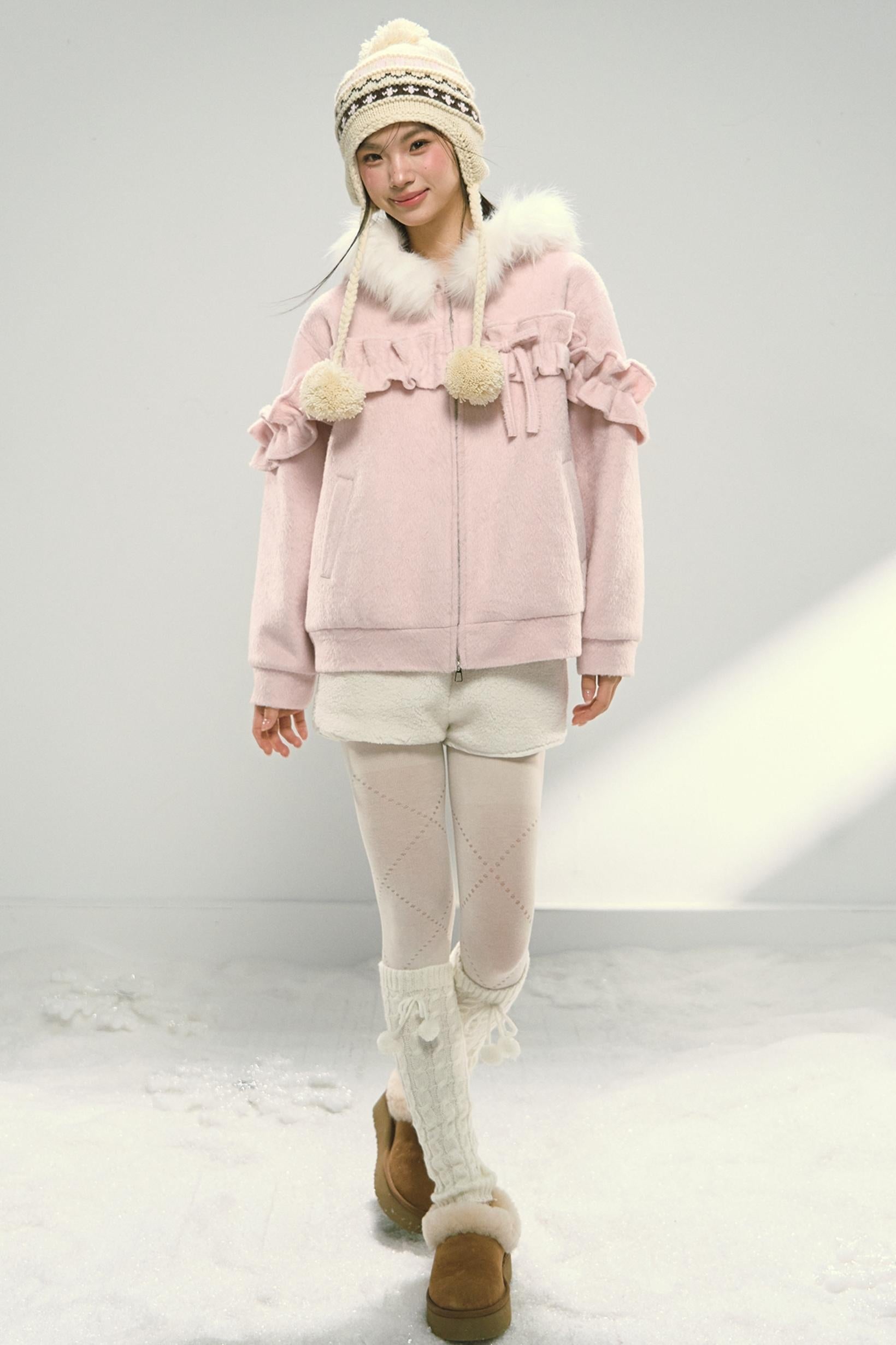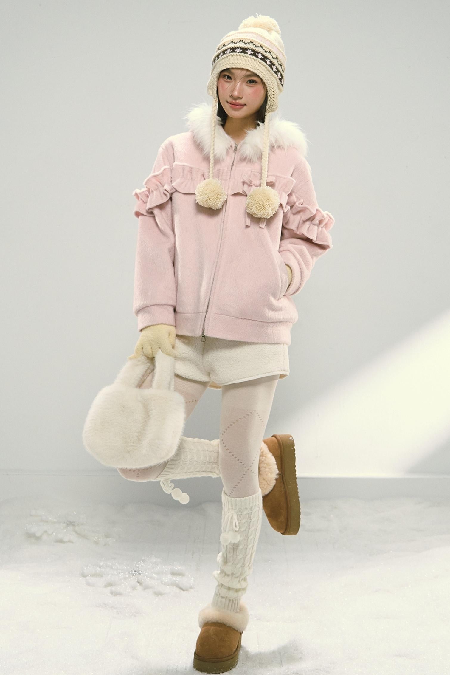 White Fur Elasticated Waist Shorts