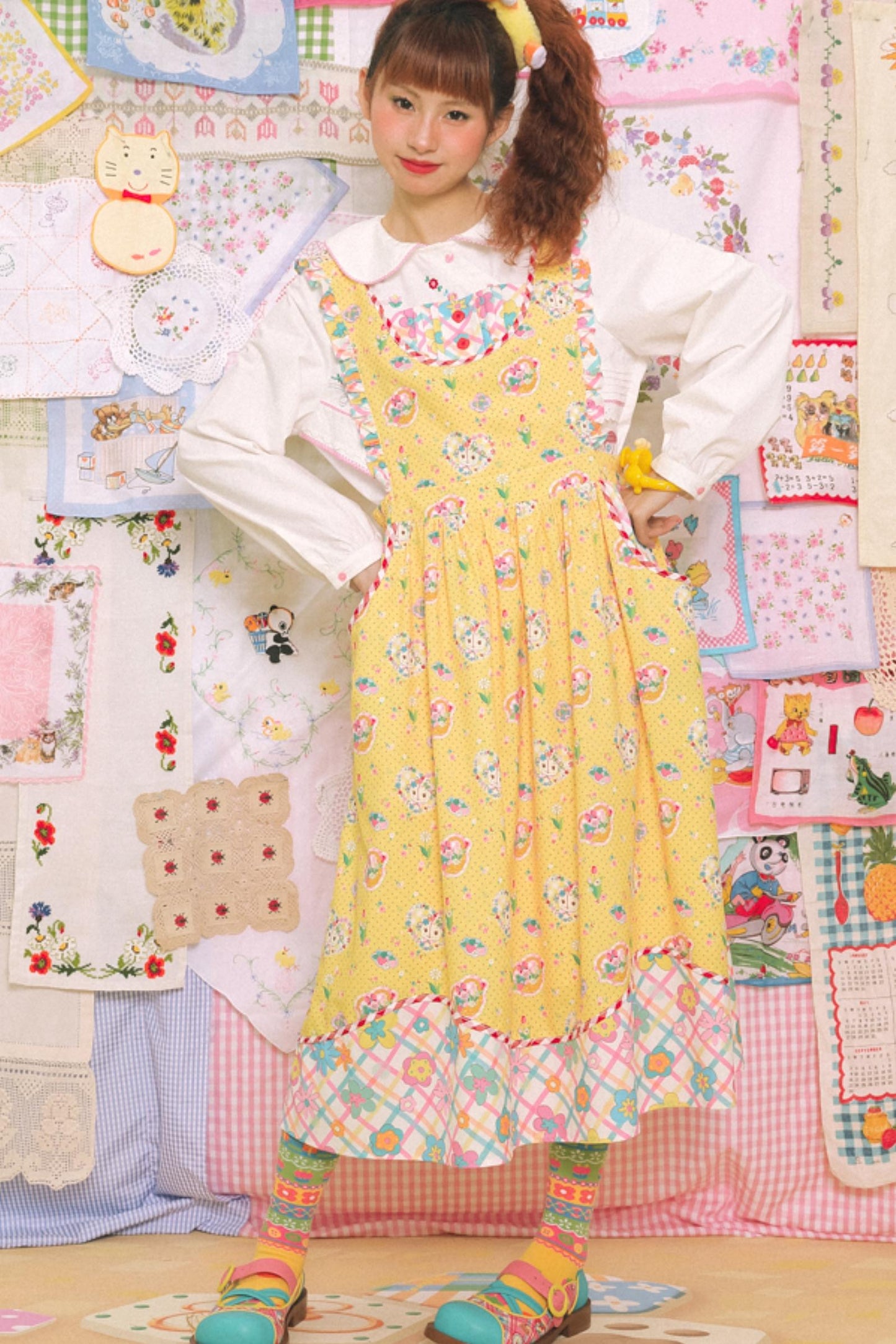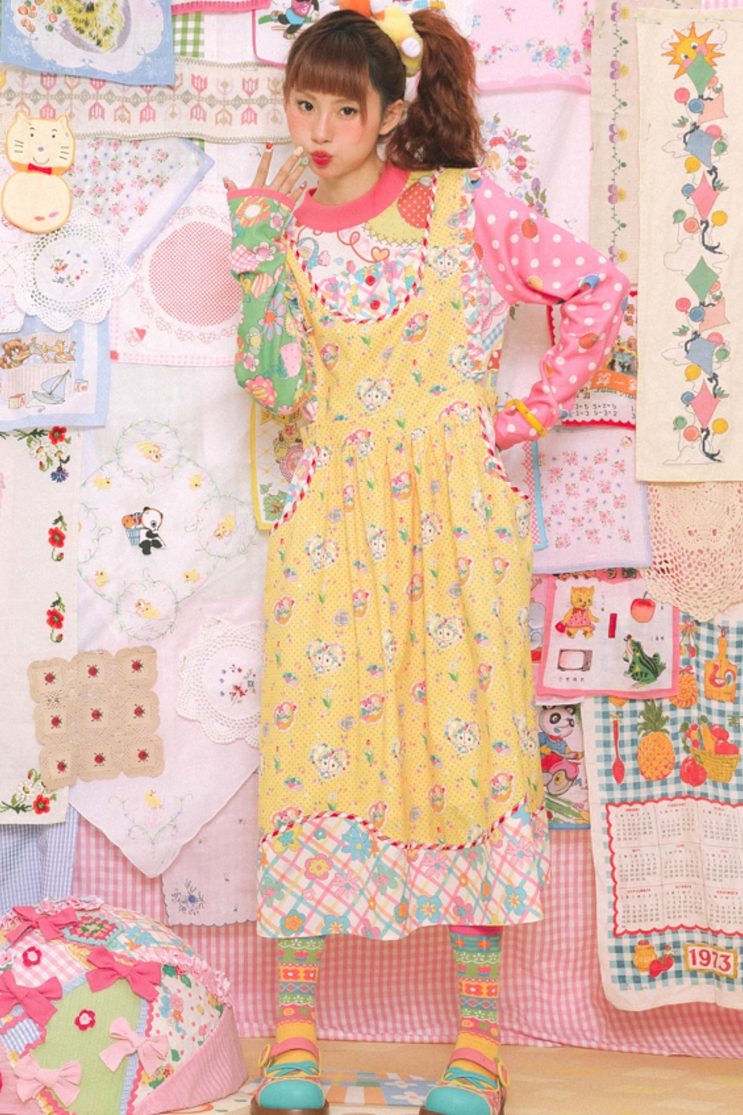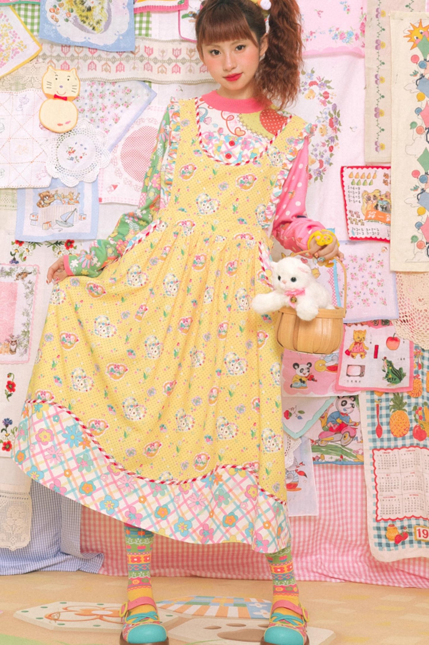 Yellow Cat Print Sleeveless Vintage Skirt Dress
