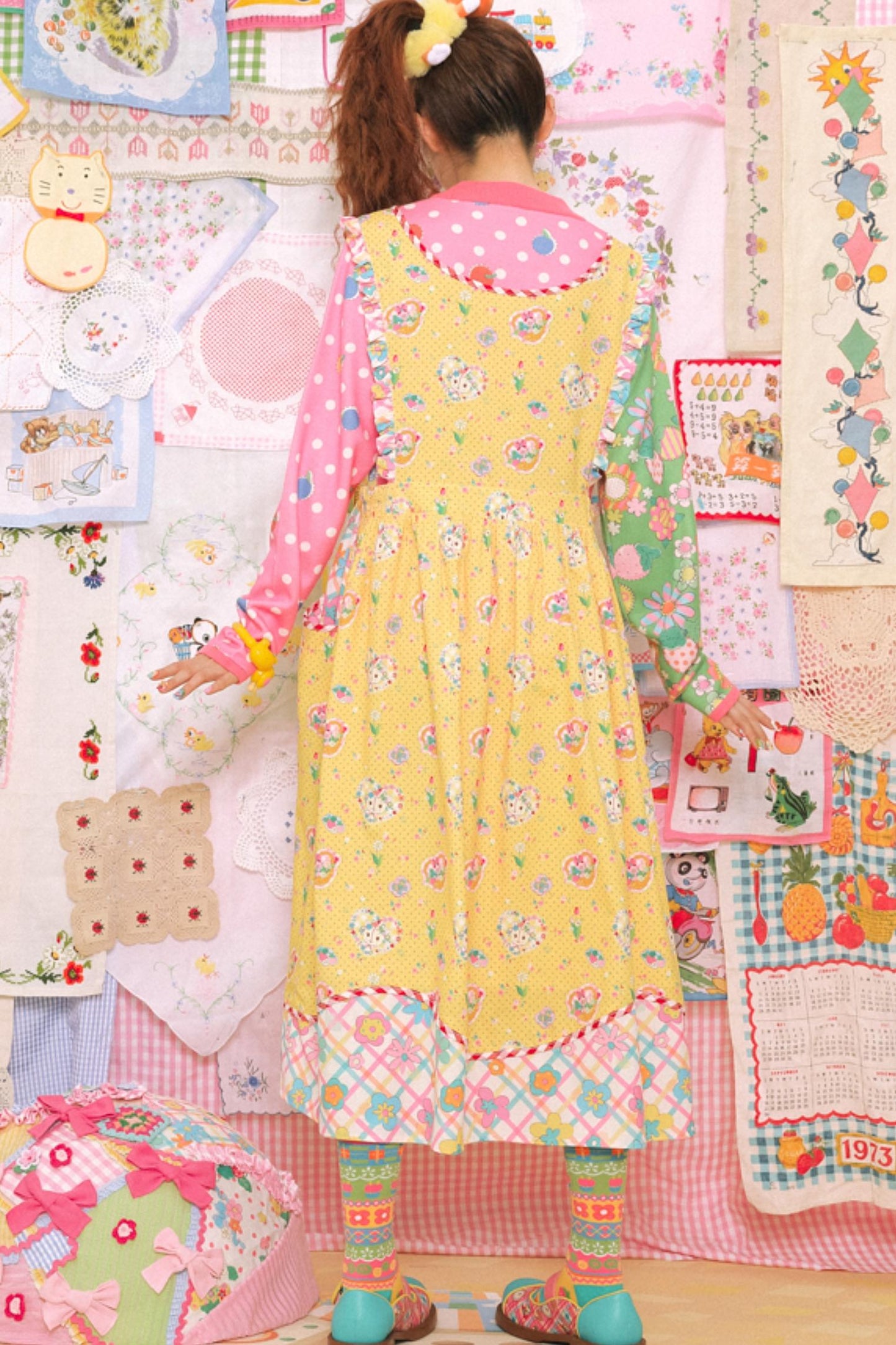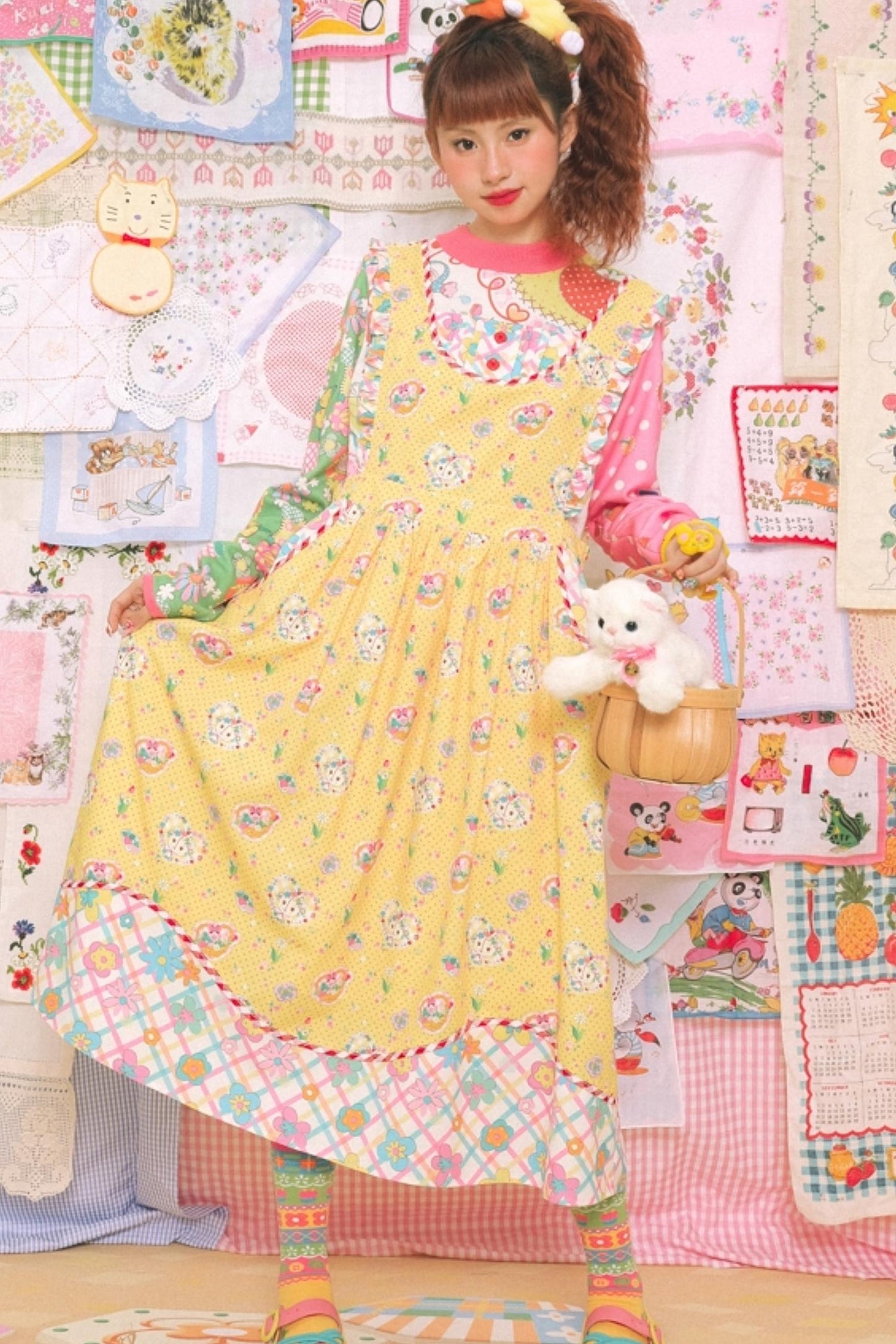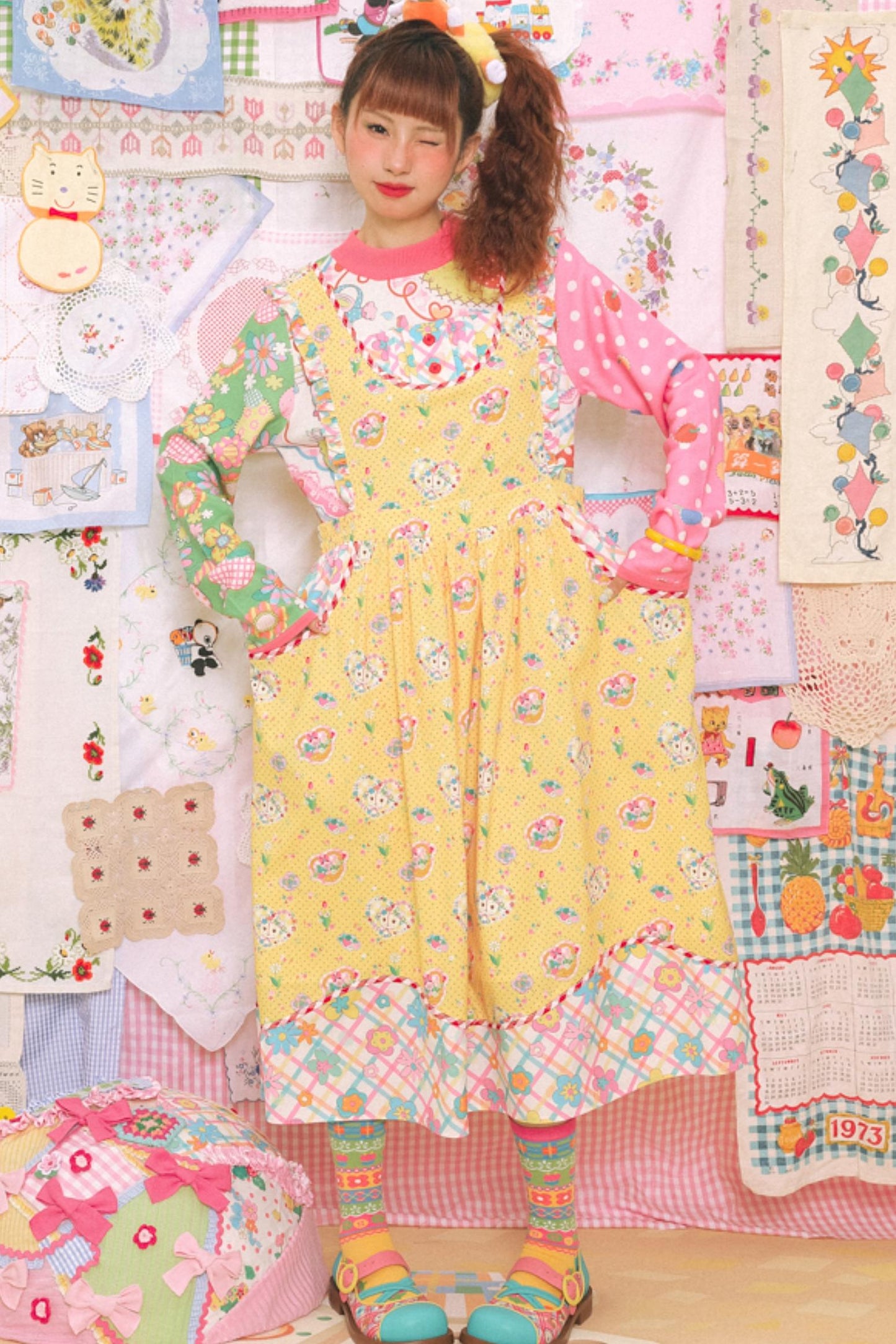 Yellow Cat Print Sleeveless Vintage Skirt Dress